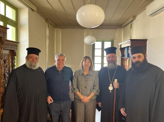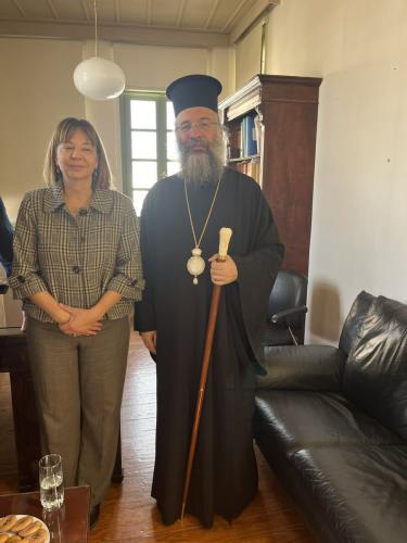 Το μεσημέρι της Τετάρτης, 12ης Μαρτίου 2025, ο Σεβασμιώτατος Μητροπολίτης Ρεθύμνης και Αυλοποτάμου κ. Πρόδρομος επισκέφθηκε εθιμοτυπικά, στην έδρα της, την κ. Ελένη Παπαδοπούλου, Αρχαιολόγο, Αναπληρώτρια Προϊσταμένη της Εφορείας Αρχαιοτήτων Ρεθύμνου, η οποία ανέλαβε πρόσφατα τα καθήκοντά της στο Ρέθυμνο.