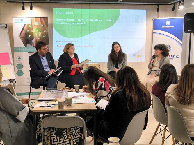 Στη συνέχεια τα συμπεράσματα σχολιάστηκαν από ένα πάνελ ειδικών, που περιλάμβανε τη Μαρία Κασσωτάκη, Προϊσταμένη της Ειδικής Υπηρεσίας Διαχείρισης Περιφέρειας Κρήτης, τη Νεκταρία Καλογιαννάκη, Προϊσταμένη Διεύθυνσης Περιφερειακής Οικονομίας & Εξωστρέφειας Περιφέρειας Κρήτης και τον Γιώργο Αλεξάκη, Εντεταλμένο Περιφερειακό Σύμβουλο Κρήτης για τα Ευρωπαϊκά και Διεθνή Θέματα. Τη συζήτηση συντόνισε η Τζίνα Αποστολάκη, συνεργάτης στο Αυτοτελές Τμήμα Ευρωπαϊκών Διεθνών Θεμάτων & Ανάπτυξης Συνεργασιών της Περιφέρεια Κρήτης.