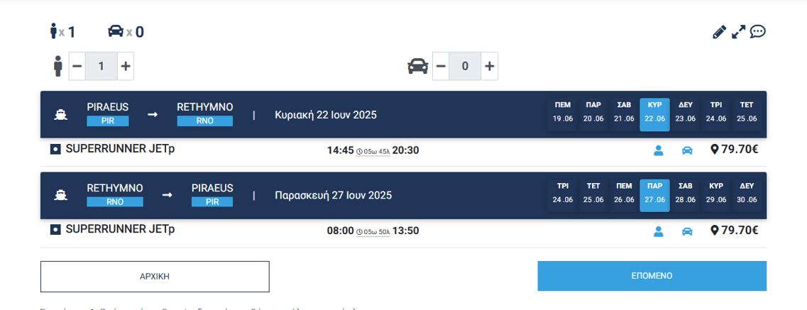 Η αναχώρηση αντίστοιχα από τον Πειραιά θα γίνεται στις 14:45 με άφιξη στο Ρέθυμνο στις 20:30.