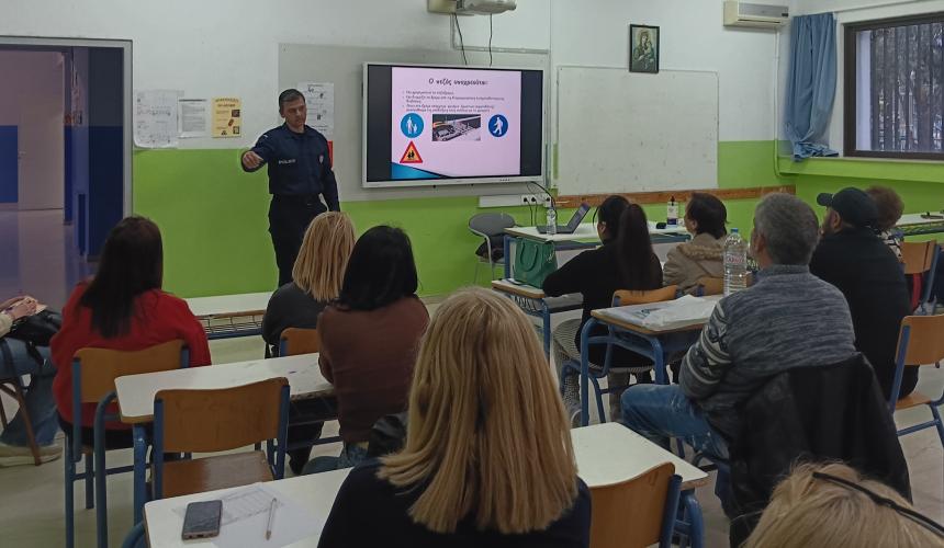 Το Σ.Δ.Ε. Ρεθύμνου πραγματοποίησε την Τετάρτη 12 Μαρτίου δράση με θέμα «Οδική Ασφάλεια και Κυκλοφοριακή Αγωγή» σε συνεργασία με το Τμήμα Τροχαίας Ρεθύμνης. Ομιλητής στην δράση ήταν ο κος Νικόλαος Μπέτσιος αρχιφύλακας στο Τμήμα Τροχαίας.