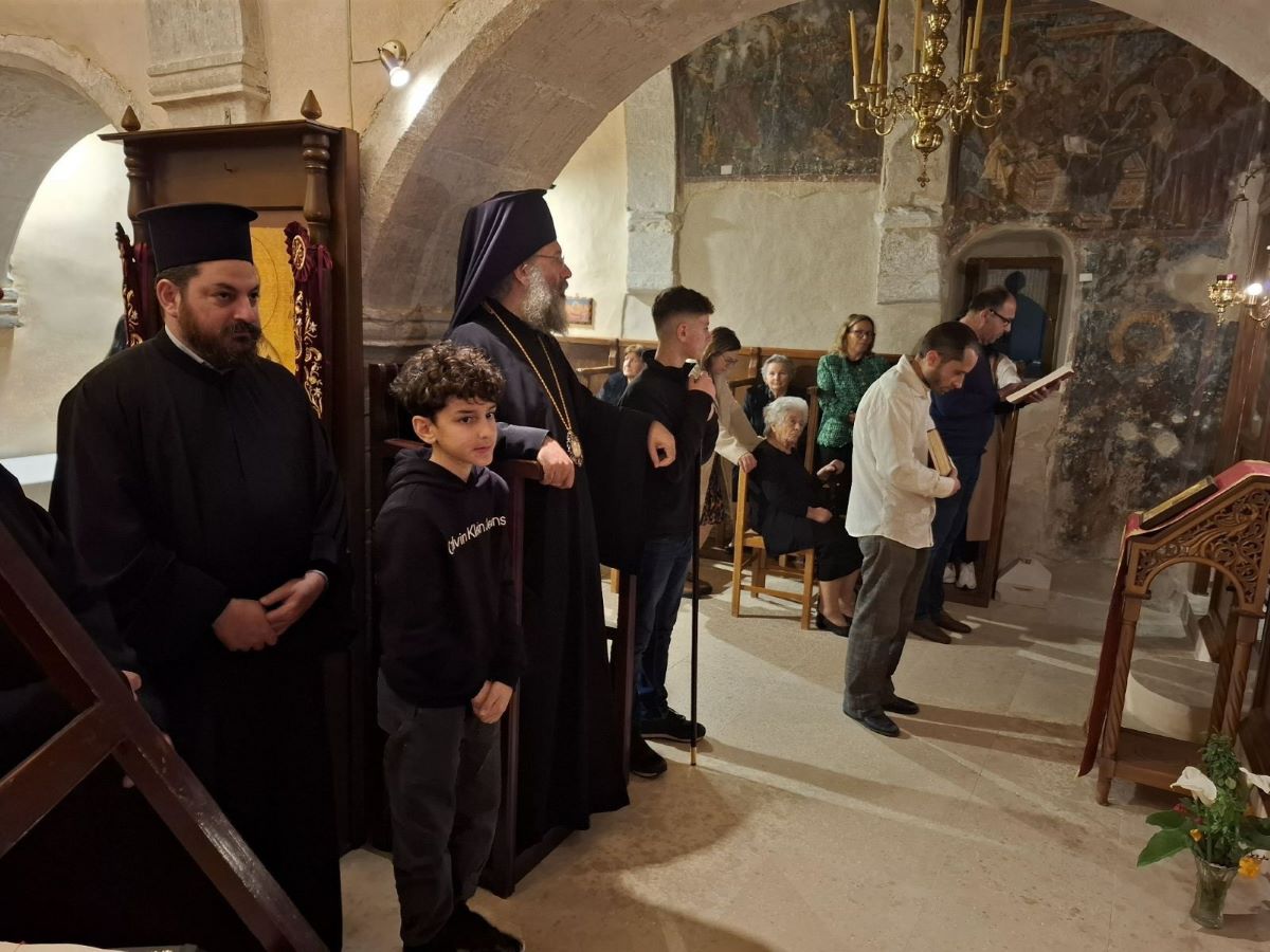 Ο Επίσκοπός μας συνεχάρη εκ βάθους καρδίας τον Καθηγούμενο Τίτο και απευθύνθηκε στο εκκλησίασμα, λέγοντας ότι είναι προνόμιο για το μικρό αυτό χωριό να έχει Εφημέριο τον Ηγούμενο της περιωνύμου Μονής του Αρκαδίου. Ο Σεβασμιώτατος αναφέρθηκε στην ακολουθία του Μεγάλου Αποδείπνου και στα θεολογικά νοήματα των ύμνων και των αναγνωσμάτων της και ευχήθηκε σε όλους καλό υπόλοιπο της Αγίας και Μεγάλης Τεσσαρακοστής και καλό Άγιο Πάσχα.