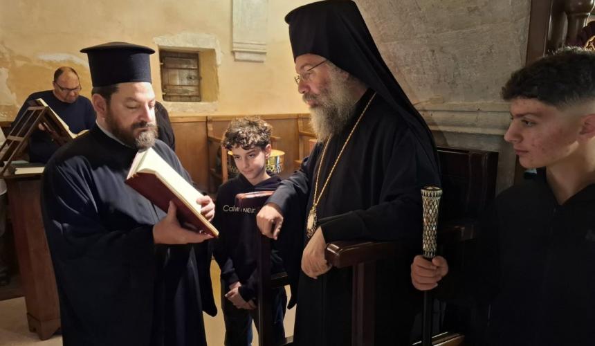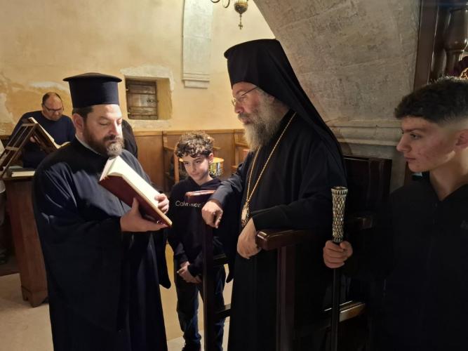 Το απόγευμα της Πέμπτης της Β΄ Εβδομάδος των Νηστειών, 13ης Μαρτίου 2025, ο Σεβασμιώτατος Μητροπολίτης Ρεθύμνης και Αυλοποτάμου κ. Πρόδρομος χοροστάτησε κατά την ακολουθία του Μεγάλου Αποδείπνου στον Ιερό Ναό Αγίας Τριάδος και Αγίου Νικολάου, στο οικισμό Αγίας Τριάδας της Ενορίας Μέσης.
