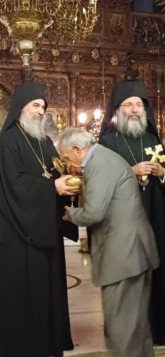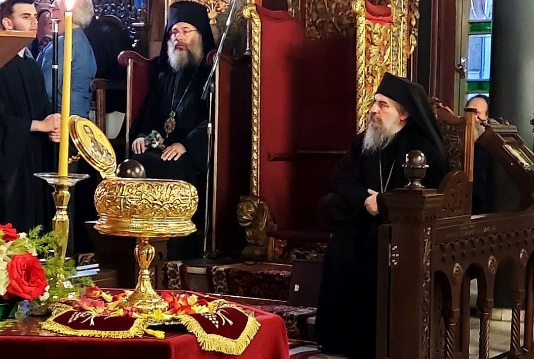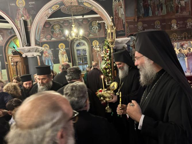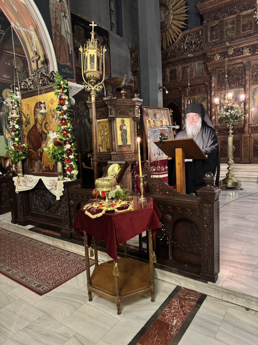 Κατά τη διάρκεια του Εσπερινού, τέθηκε σε προσκύνηση απότμημα ιερού λειψάνου του εν Αγίοις Πατρός ημών Βασιλείου, Αρχιεπισκόπου Καισαρείας της Καππαδοκίας, Ουρανοφάντορος του Μεγάλου, το οποίο εκόμισε από την Ιερά Πατριαρχική και Σταυροπηγιακή Μονή Προφήτου Ηλιού Ρουστίκων ο Καθηγούμενος αυτής, Πανοσιολ. Αρχιμ. Ιωάννης Κουφουδάκης, ο οποίος τέλεσε και τον Εσπερινό.