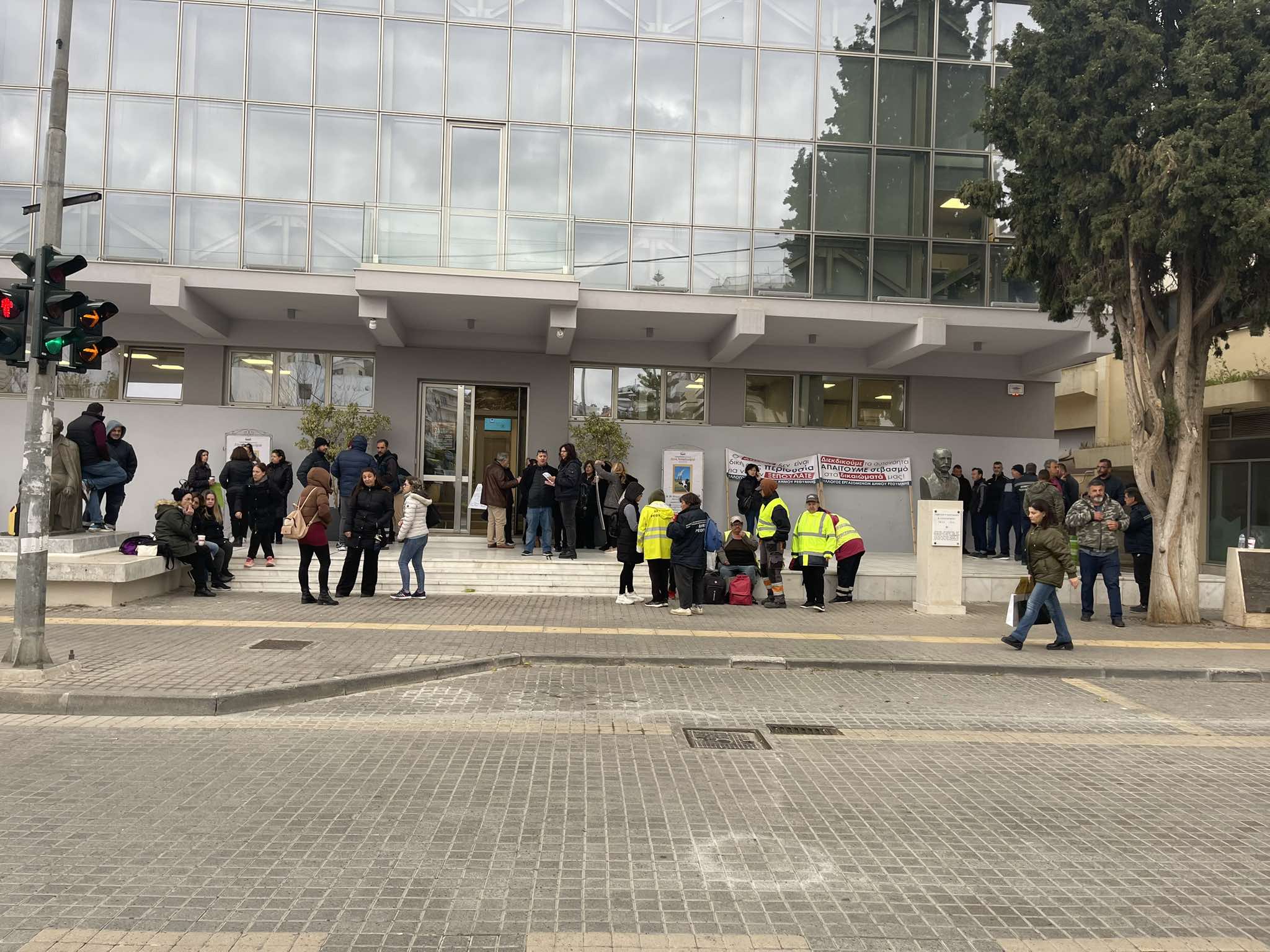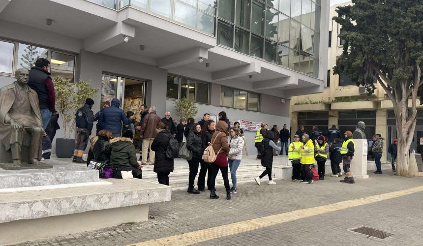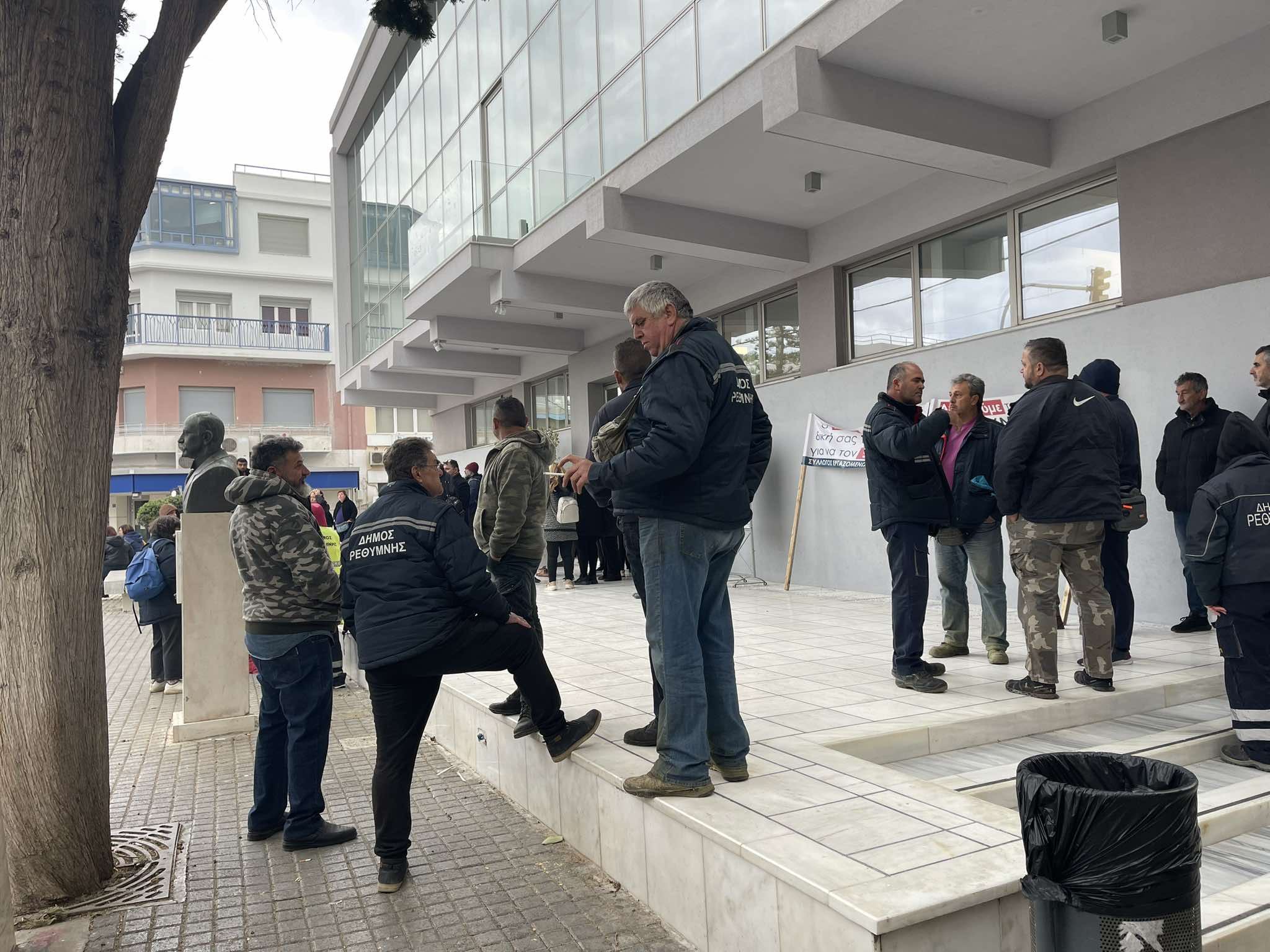 Στάση εργασίας και κινητοποίηση πραγματοποιούν αυτήν την ώρα, έξω από το δημαρχείο οι εργαζόμενοι στο δήμο Ρεθύμνης.