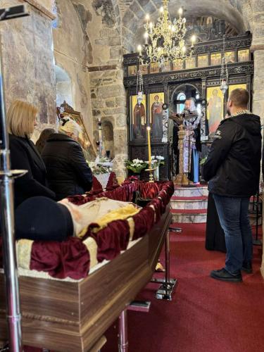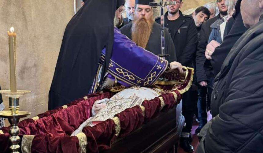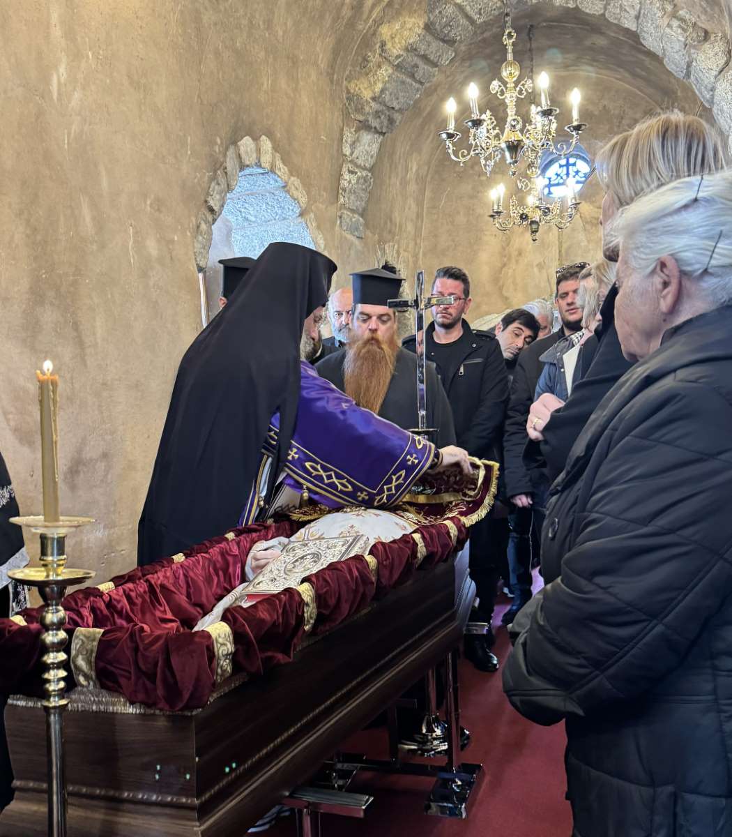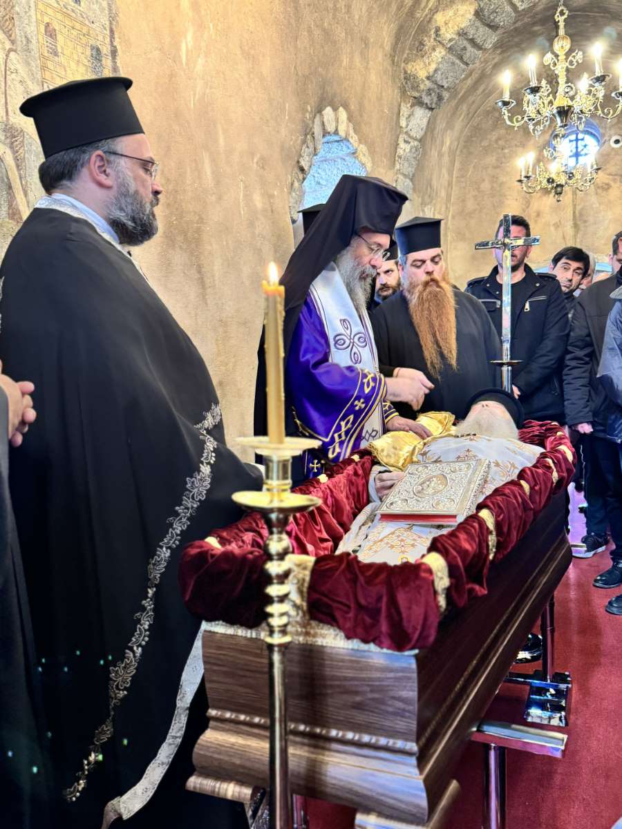 Αμέσως μετά, ο Σεβασμιώτατος, συμπαραστατούμενος υπό κληρικών της Τοπικής μας Εκκλησίας, ανέγνωσε τη «Νεκρώσιμο Ακολουθία εις Ιερείς», μετά το πέρας της οποίας συνεχίστηκε υπό των κληρικών, κατά την τάξη, η ανάγνωση του Ιερού Ευαγγελίου μέχρι την ώρα της Εξοδίου Ακολουθίας, αργά το μεσημέρι.