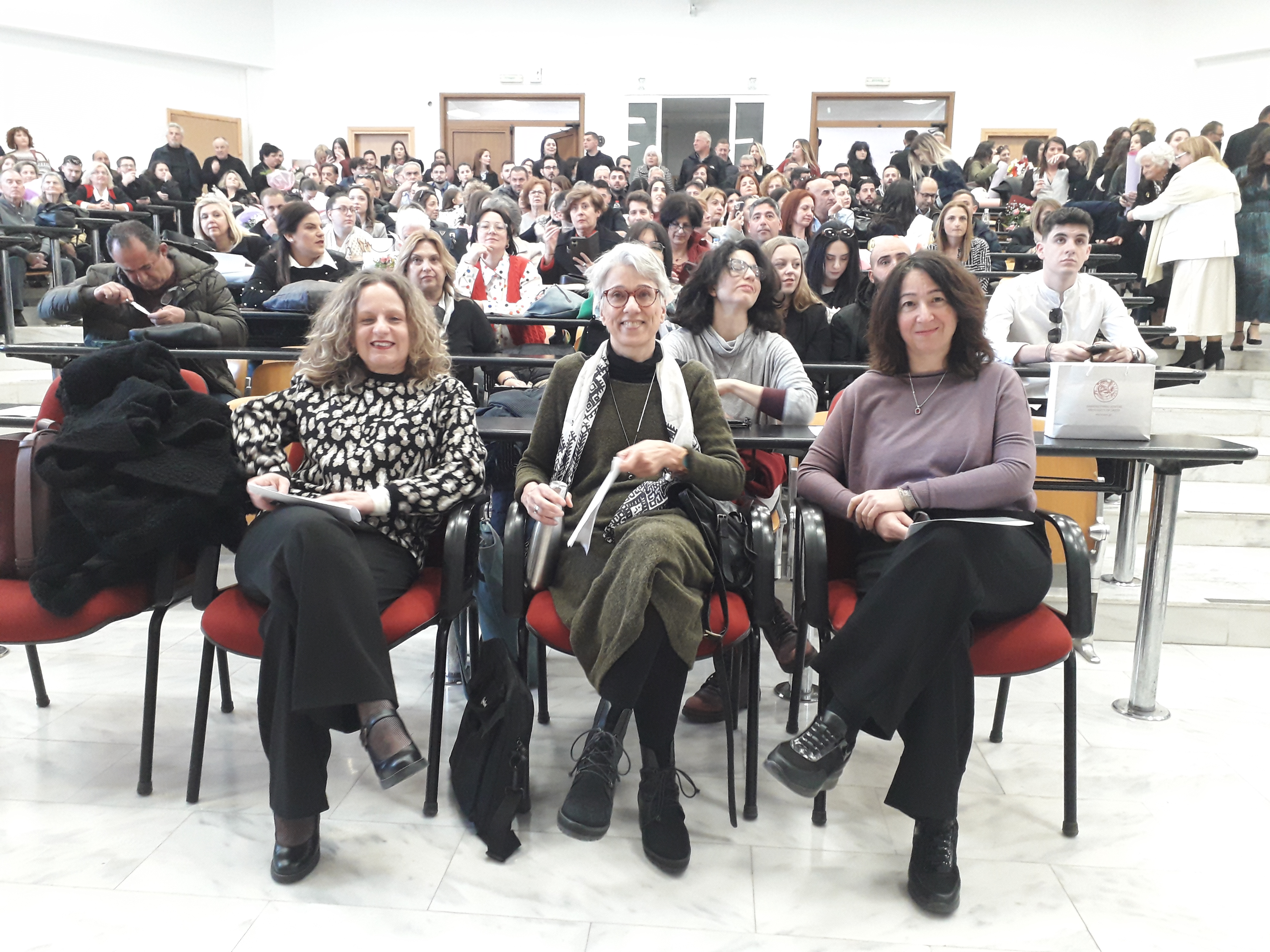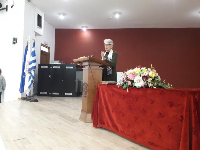 Ακολούθησε η ομιλία της Κοσμήτορα της Φιλοσοφικής Σχολής Καθηγήτριας Αγγέλας Καστρινάκη η οποία μίλησε για τις προκλήσεις μιας εποχής όπου οι παραδοσιακές συμμαχίες καταρρέουν και η Ευρώπη βρίσκεται πλέον ανάμεσα σε δύο πυρά, δυτικά και ανατολικά. Συνεχίζοντας, όρισε την Ευρώπη ως τον τόπο της ελευθερίας και της ισότητας, της προστασίας της φύσης και του σεβασμού στο διαφορετικό, το μεγαλύτερο επίτευγμα συνεργασίας των εθνών στην ιστορία, έναντι της ωμής βίας, της ολιγαρχίας και της καταπάτησης των ανθρώπινων δικαιωμάτων. Τελειώνοντας, εξήρε την ανάγκη ενός νέου ευρωπαϊκού πατριωτισμού.