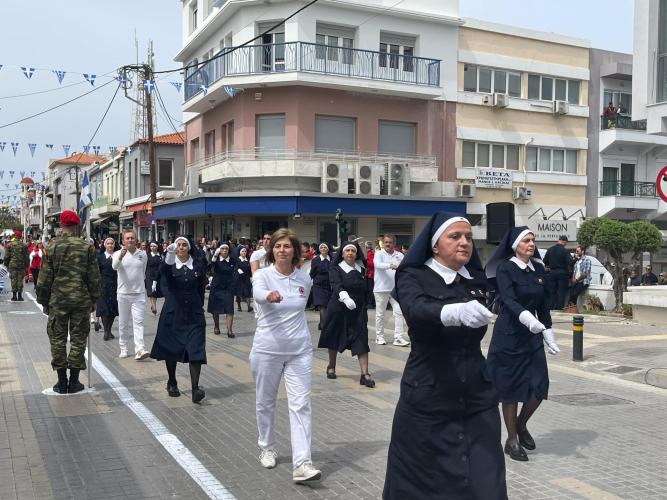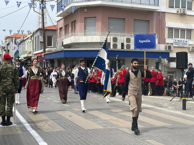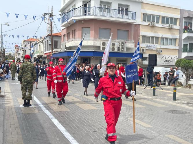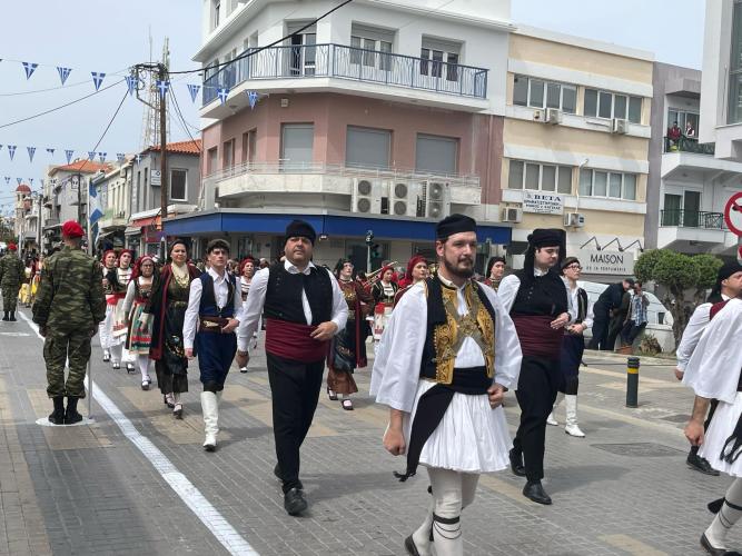 Στην παρέλαση συμμετείχαν η Δημοτική Φιλαρμονική, οι λαογραφικοί σύλλογοι της πόλης, οι μαθητές και οι μαθήτριες των σχολείων, τμήματα του Ερυθρού Σταυρού, των Προσκόπων και της Σχολής Δοκίμων Αστυφυλάκων καθώς και αγήματα των ενόπλων δυνάμεων.