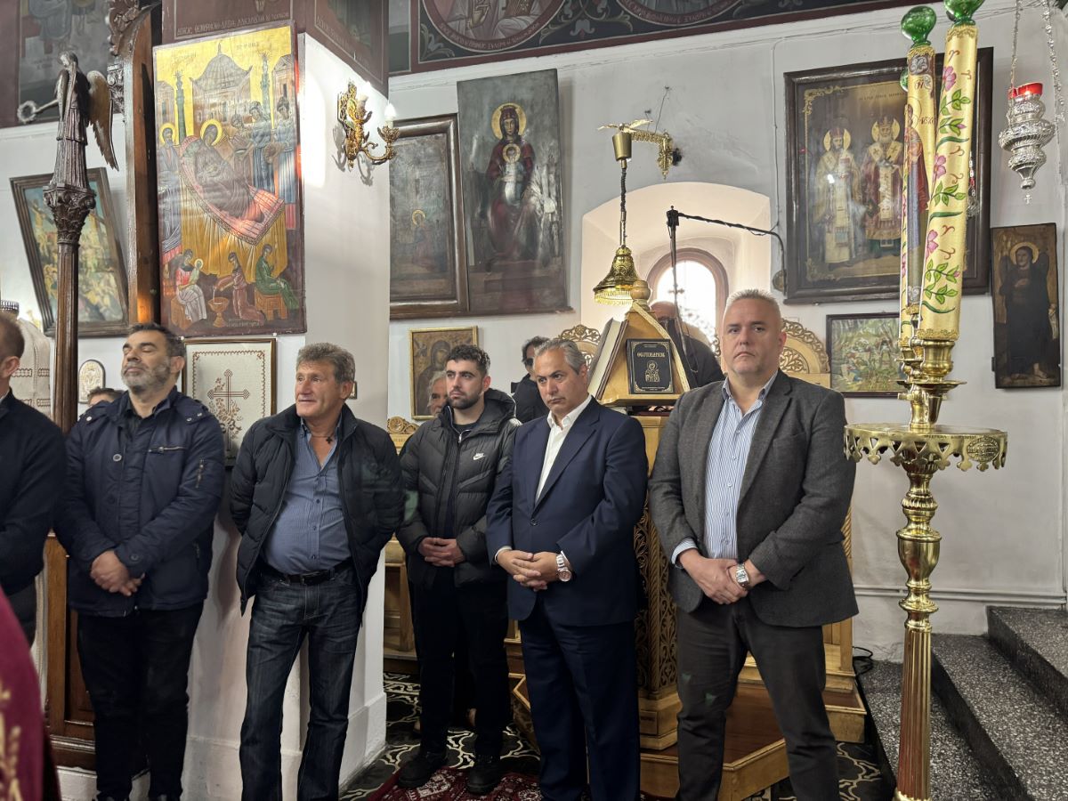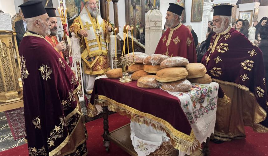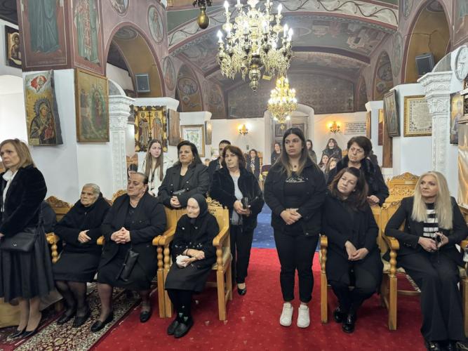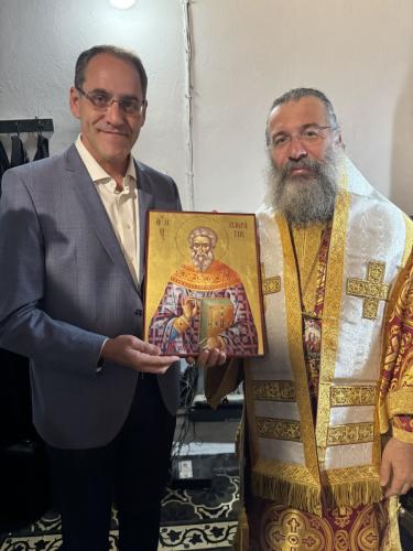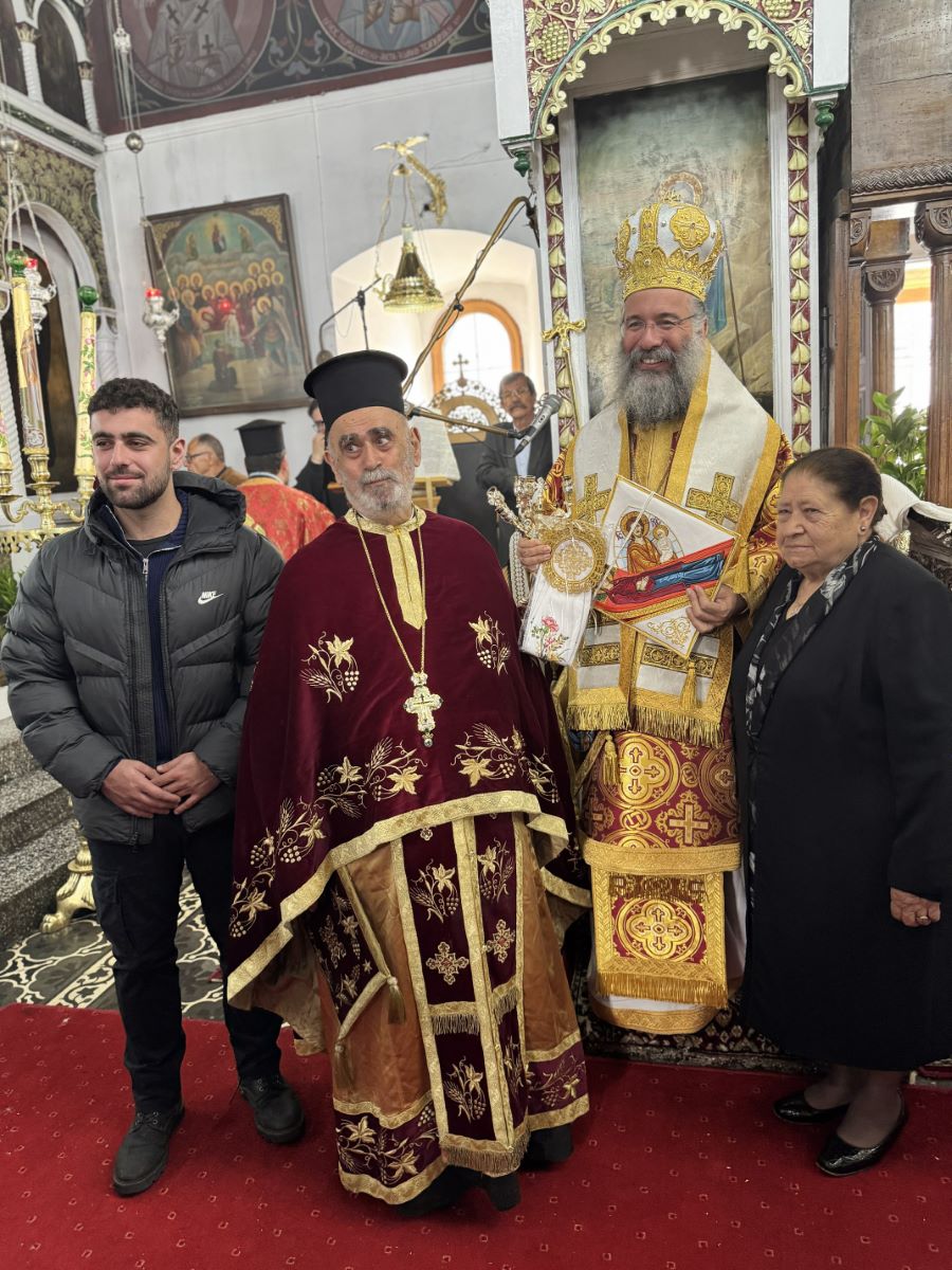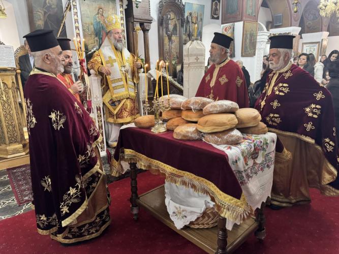 Τον Σεβασμιώτατο Ποιμενάρχη μας κ. Πρόδρομο προσφώνησε με θερμούς λόγους ο εφημέριος της ενορίας Αιδεσιμολ. Πρωτ. Κωνσταντίνος Σκουλάς και του προσέφερε εκ μέρους της ενορίας δώρα, αρχιερατικά Δικηροτρίκηρα και ιερό Επιγονάτιο με την Κοίμηση της Θεοτόκου. Ο Σεβασμιώτατος ευχαρίστησε θερμά για τα δώρα και ευχήθηκε στον π. Κωνσταντίνο και το Εκκλησιαστικό Συμβούλιο της ενορίας, καθώς και στους συλλειτουργούς ιερείς, πλούσια τη χάρη και την ευλογία του Θεού και με το καλό να φτάσουμε στο Άγιο Πάσχα.