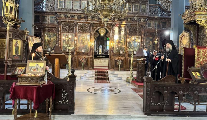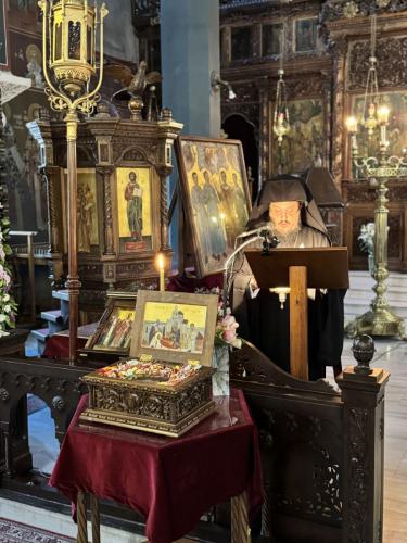 Κατά τη διάρκεια του Κατανυκτικού Εσπερινού όλοι είχαν την δυνατότητα να προσκυνήσουν αποτμήματα εκ των ιερών λειψάνων του Αγίου ενδόξου Μεγαλομάρτυρος Γεωργίου του Τροπαιοφόρου, τα οποία εκόμισε ευλογητικώς, από την Ιερά Πατριαρχική και Σταυροπηγιακή Μονή Αγίου Γεωργίου Αρσανίου, ο Καθηγούμενος αυτής, Πανοσιολ. Αρχιμανδρίτης Ευφραίμ Μανουσάκης, ο οποίος και τέλεσε τον Κατανυκτικό Εσπερινό.