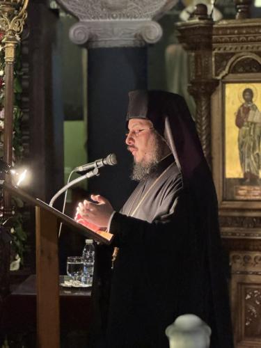 Προ της απολύσεως του Εσπερινού, ο Σεβασμιώτατος παρουσίασε στο εκκλησίασμα τον Πανοσιολ. Αρχιμ. Αγαθάγγελο Κουμαρτζάκη, Πρωτοσύγκελλο της Ιεράς Μητροπόλεως Κισάμου και Σελίνου, ο οποίος, όπως είπε, «έρχεται εις τα ίδια», καθώς αποτελεί σάρκα εκ της σαρκός της Τοπικής μας Εκκλησίας, και εξέφρασε θερμές ευχαριστίες προς τον Σεβασμιώτατο Μητροπολίτη Κισάμου και Σελίνου κ. Αμφιλόχιο για τη δοθείσα άδεια στον Πρωτοσύγκελλό του προκειμένου να έλθει και να μας ομιλήσει.