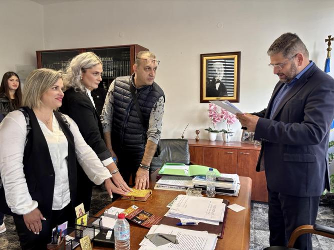 Τελετή ορκωμοσίας για τρεις νέους μόνιμους υπαλλήλους πραγματοποιήθηκε τη Δευτέρα 7 Απριλίου 2025, στο Δημαρχείο Μυλοποτάμου.