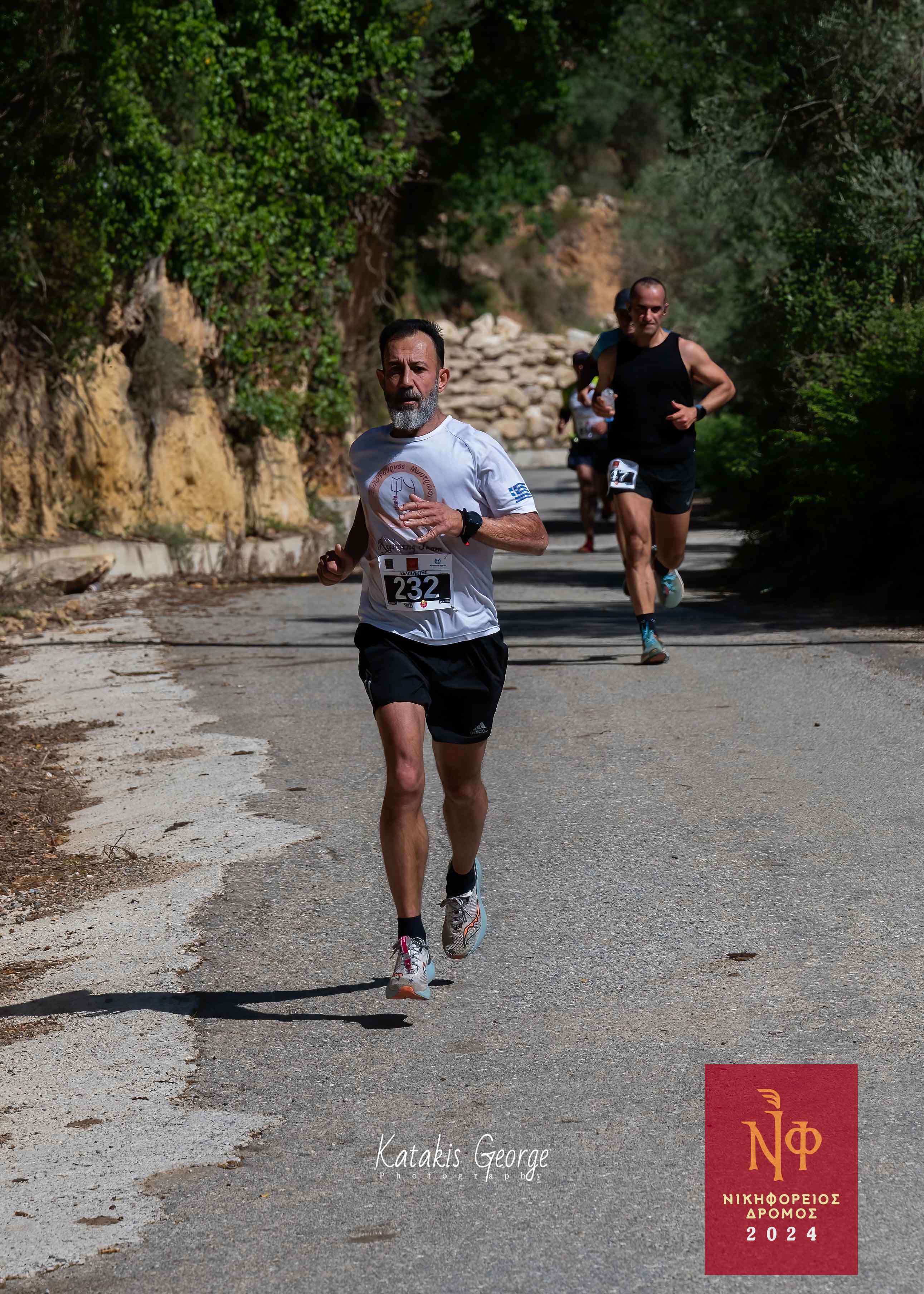 «Έχω λείψει μόνο από μια διοργάνωση και κάθε χρόνο ανυπομονώ να έλθω στο Ρέθυμνο για να λάβω μέρος σε αυτόν τον πολύ ξεχωριστό αγώνα των 24 χιλιομέτρων. Η ιδιαιτερότητα και η δυσκολία του έγκεινται στο γεγονός ότι η διαδρομή δεν είναι στρωτή και σόπατη, όπως λέμε στην Κρήτη, αλλά έχει πολλές υψομετρικές διαφορές, δηλαδή ανηφόρες και κατηφόρες. Πρόκειται για μια περίεργη διαδρομή που σε υποχρεώνει να βρίσκεσαι διαρκώς σε εγρήγορση. Στην πραγματικότητα, για να ανταποκριθεί κάποιος στις απαιτήσεις του Νικηφόρειου Δρόμου θα πρέπει να έχει κάνει προπόνηση Μαραθωνοδρόμου και να μην περιορίζει την προετοιμασία του σε αγώνες 5 και 10 χιλιομέτρων» εξηγεί ο 52χρονος αθλητής από την Αγία Βαρβάρα του Νομού Ηρακλείου.