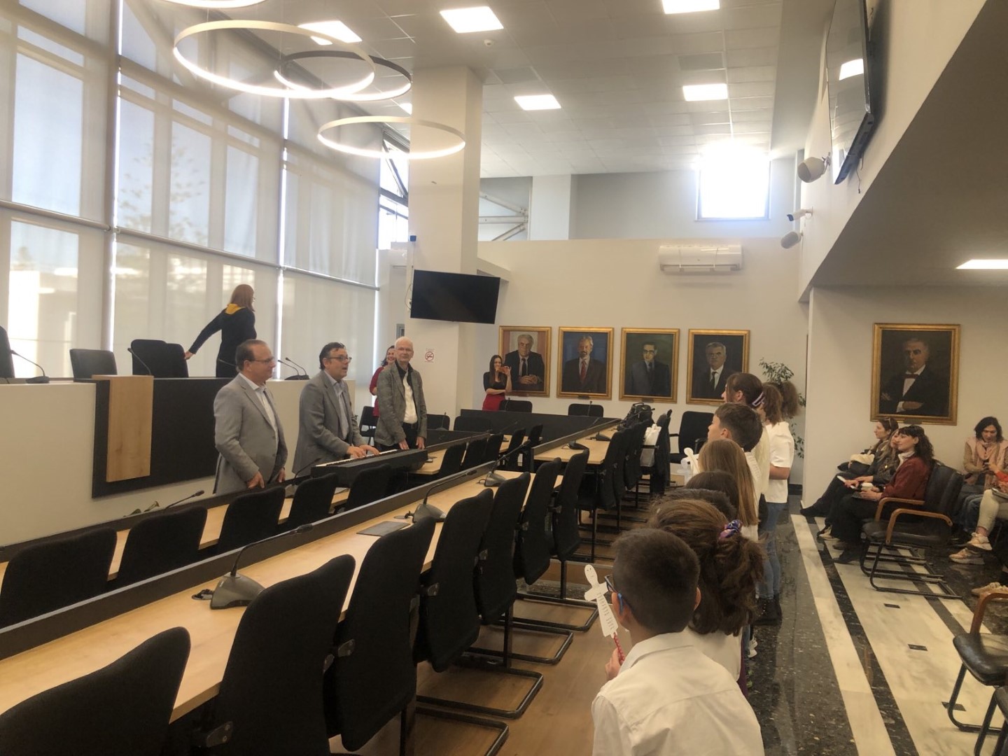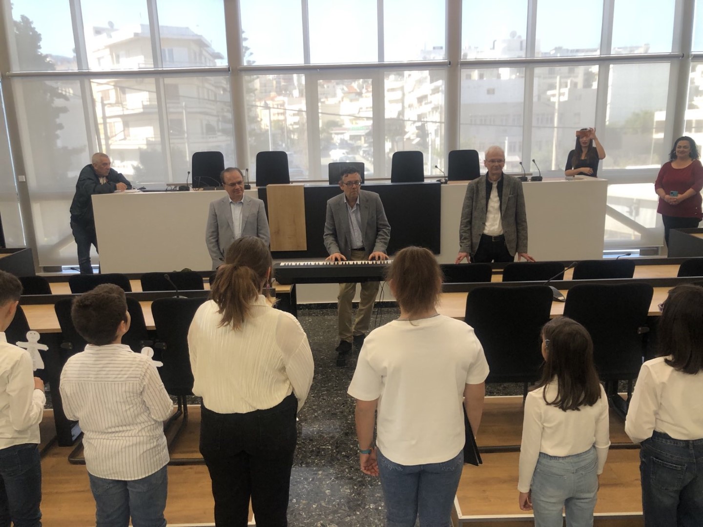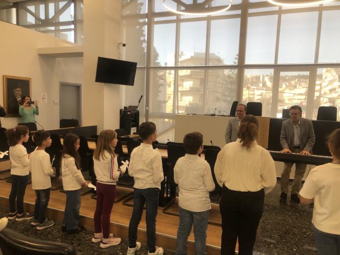 Οι γλυκόλαλες φωνές και τα μελωδικά τιτιβίσματα της Παιδικής Χορωδίας του Δημοτικού Ωδείου Ρεθύμνου πλημμύρησαν σήμερα το πρωί το Δημαρχείο της πόλης και χάρισαν υπέροχα ακούσματα.