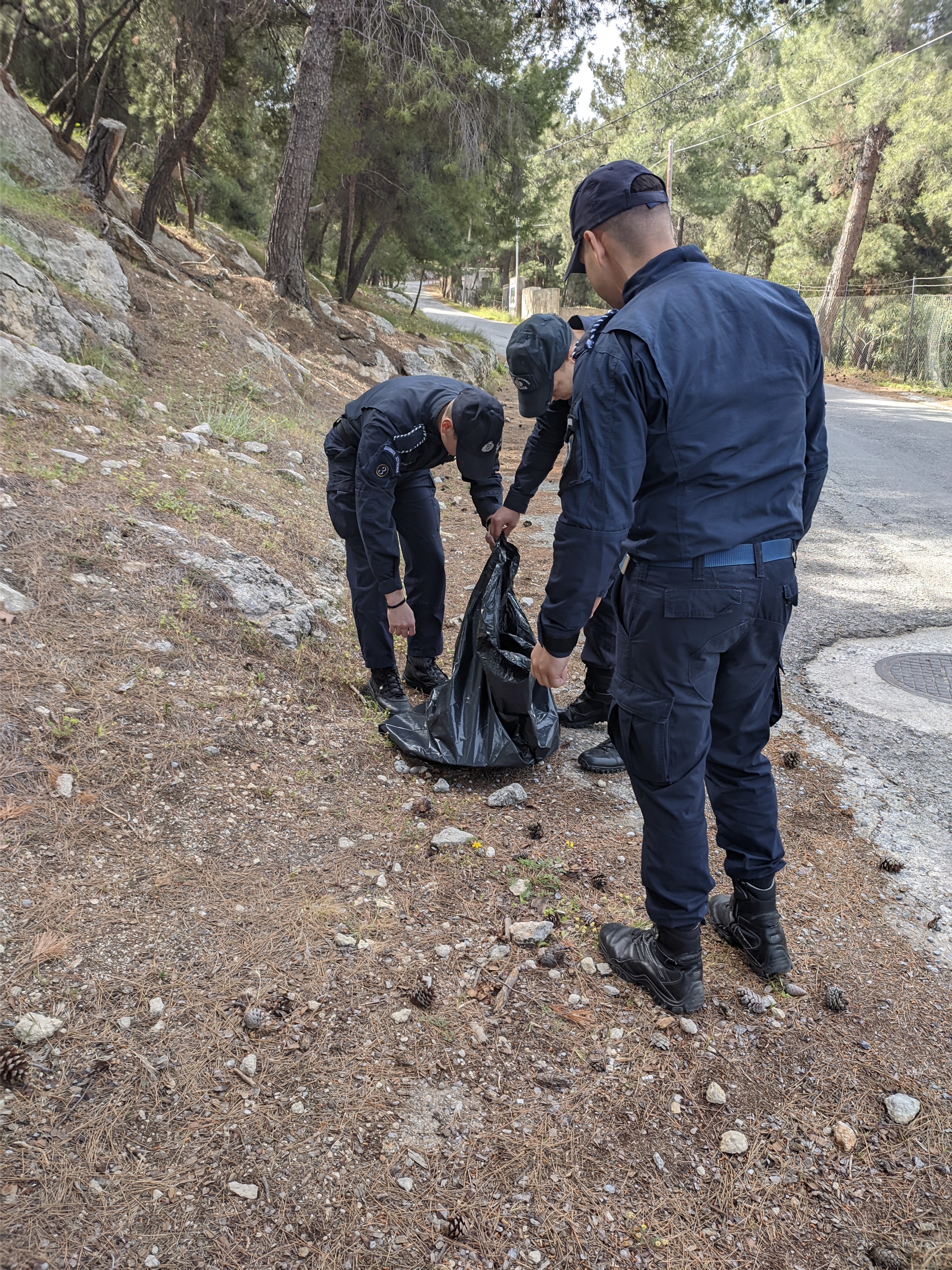 Στο πλαίσιο αυτό το πρωί της Μεγάλης Τρίτης πραγματοποιήθηκε εθελοντικός καθαρισμός του δάσους του Ευληγιά με τη συμμετοχή τριτοετών φοιτητών του Τμήματος Ρεθύμνου της Σχολής Δοκίμων Αστυφυλάκων.