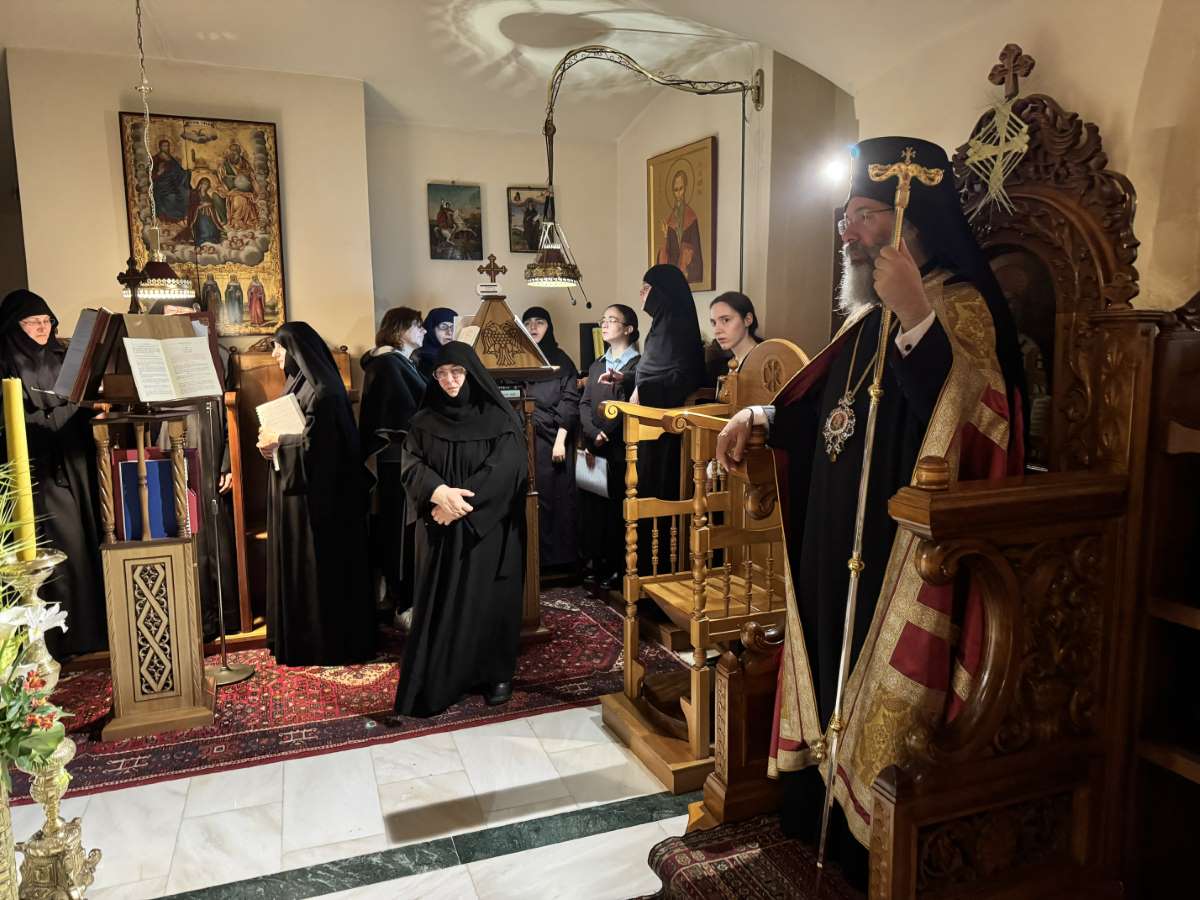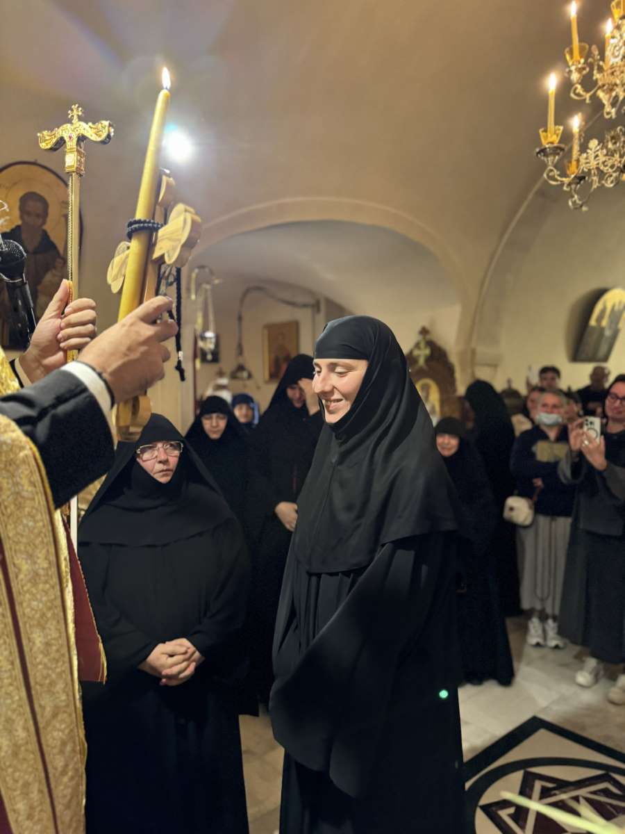Προ της απολύσεως του Εσπερινού, ο Σεβασμιώτατος τέλεσε την κουρά ρασοφορίας της δόκιμης μοναχής Νίνας, εκ Γεωργίας ορμώμενης, μετονομάζοντάς της σε Εμμέλεια Μοναχή.