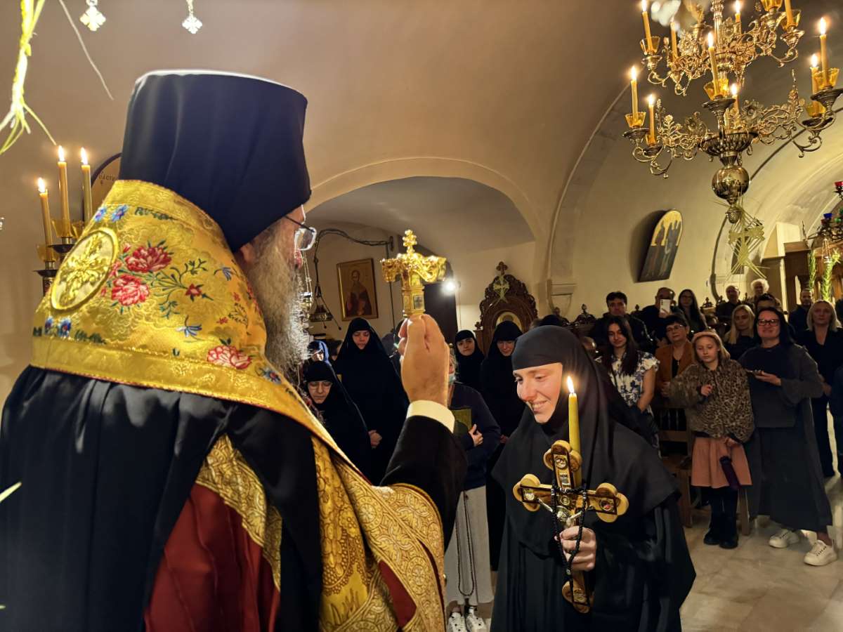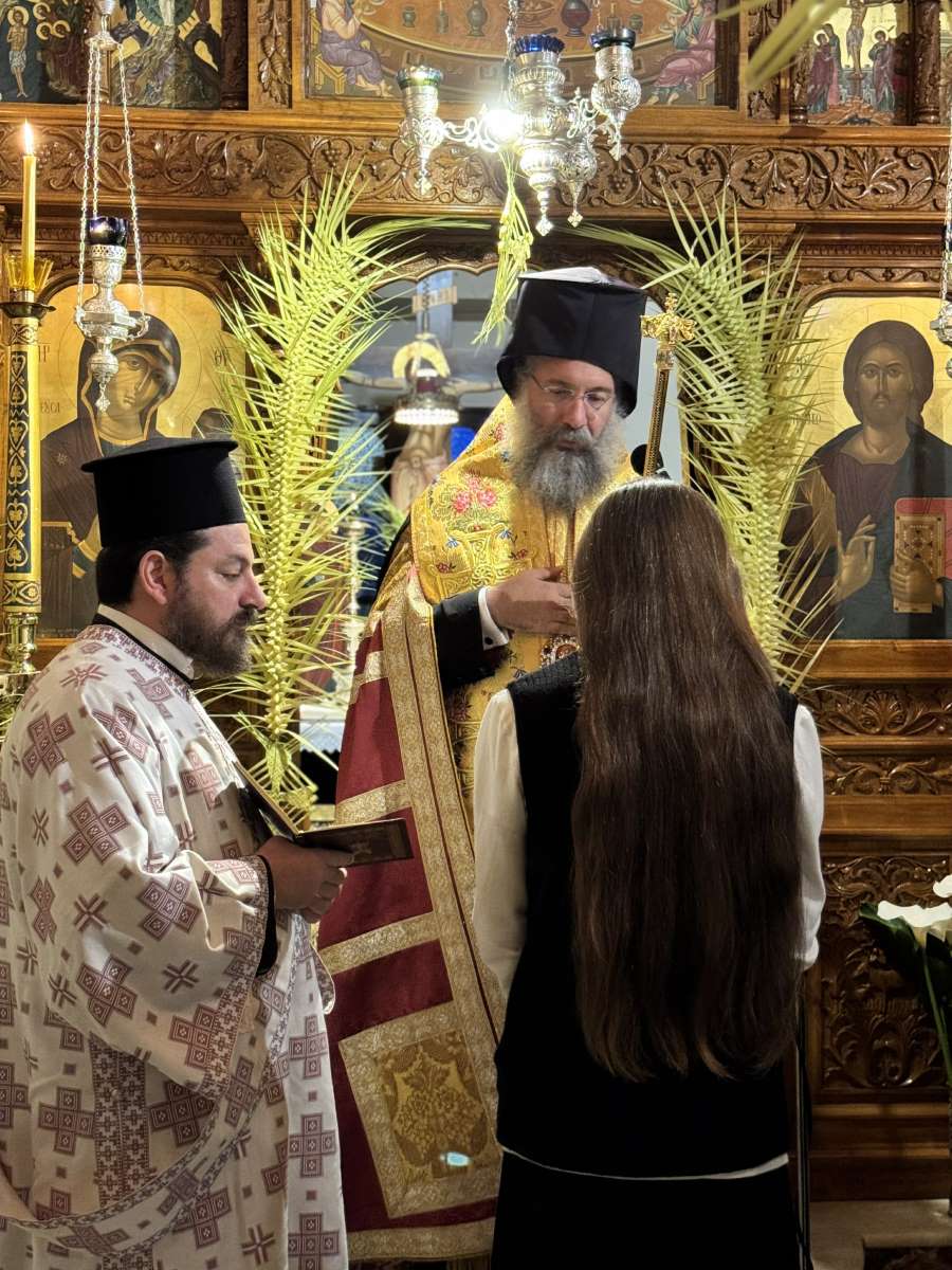Ο Σεβασμιώτατος έδωσε στη νέα Μοναχή πνευματικές νουθεσίες και της ευχήθηκε πάντοτε το χαμόγελο του προσώπου της να αντανακλά τη Χάρη του Θεού, η οποία θα κατασκηνώνει στην ψυχή και όλη την ύπαρξή της. Ευχήθηκε δε στην Αδελφότητα, τους παριστάμενους Κληρικούς και το εκκλησίασμα καλή Αγία και Μεγάλη Εβδομάδα και καλή Αγία Ανάσταση.
