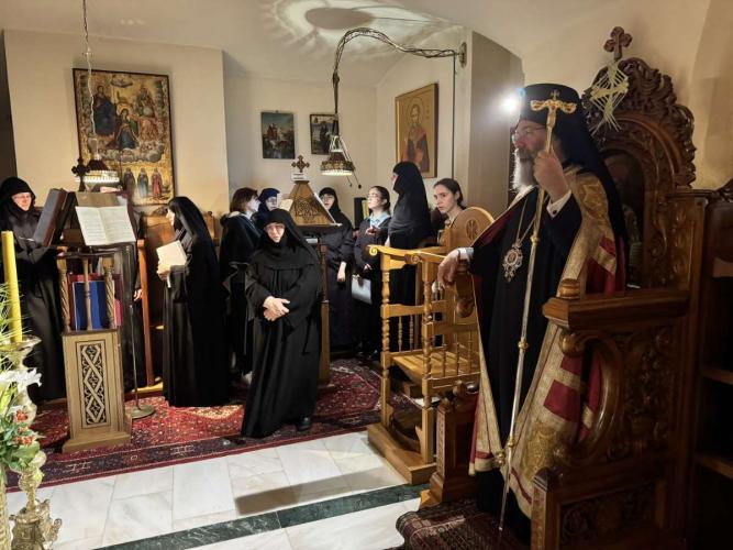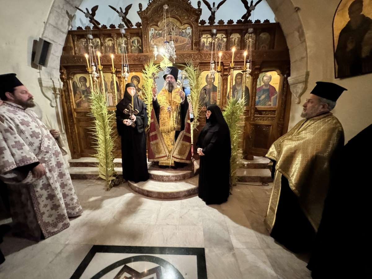 Το απόγευμα του Σαββάτου του Λαζάρου, 12ης Απριλίου 2025, ο Σεβασμιώτατος Μητροπολίτης Ρεθύμνης και Αυλοποτάμου κ. Πρόδρομος χοροστάτησε κατά τον Εσπερινό της Μεγάλης Εορτής της Κυριακής των Βαΐων, στην Ιερά Μονή Αγίας Ειρήνης Ρεθύμνης.
