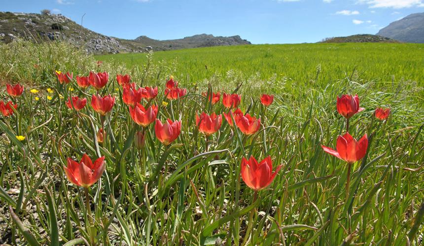Στην ευρύτερη περιοχή του Σπηλίου στο δήμο Αγίου Βασιλείου στην περιοχή «Γιους Κάμπος»* είναι η περίοδος που ανθίζει η σπάνια μωβ-κόκκινη τουλίπα**.