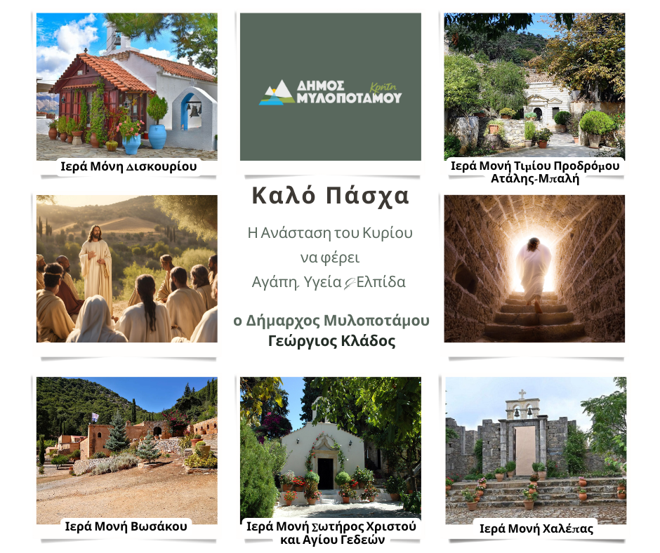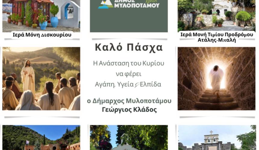 Στον ξεχωριστό και ευλογημένο τόπο του Μυλοποτάμου, το Πάσχα δεν είναι απλώς μια θρησκευτική γιορτή αλλά μια ζωντανή εμπειρία πίστης, μνήμης και συλλογικής ταυτότητας. Μέρες σαν κι αυτές μάς καλούν να αναστοχαστούμε, να ξαναβρούμε τις ρίζες μας και να αντλήσουμε δύναμη από τα διαχρονικά μηνύματα των Παθών και της Ανάστασης.