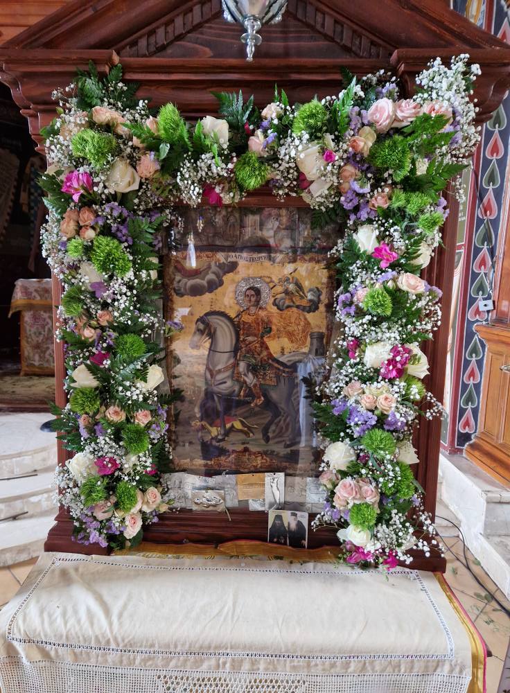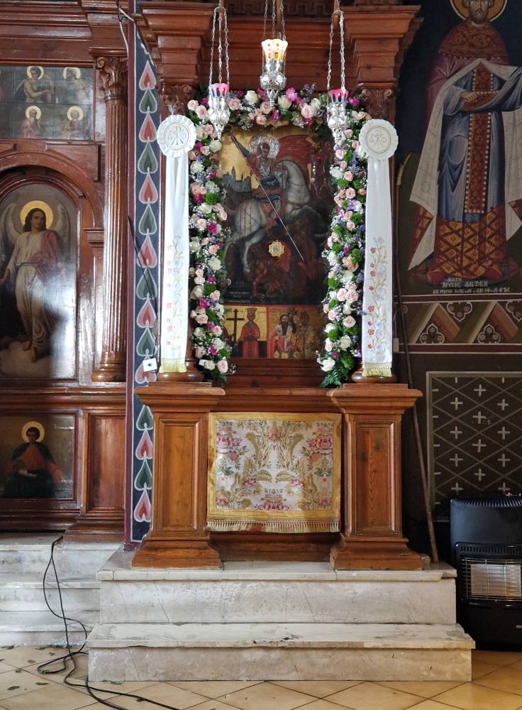 Πλήθος πιστών επισκέφθηκε και φέτος για να προσκυνήσει τον Άγιο Γεώργιο που τιμάται στο καθολικό του Μοναστηριού, 'όπου φυλάσσεται και τμήμα των λειψάνων Του.