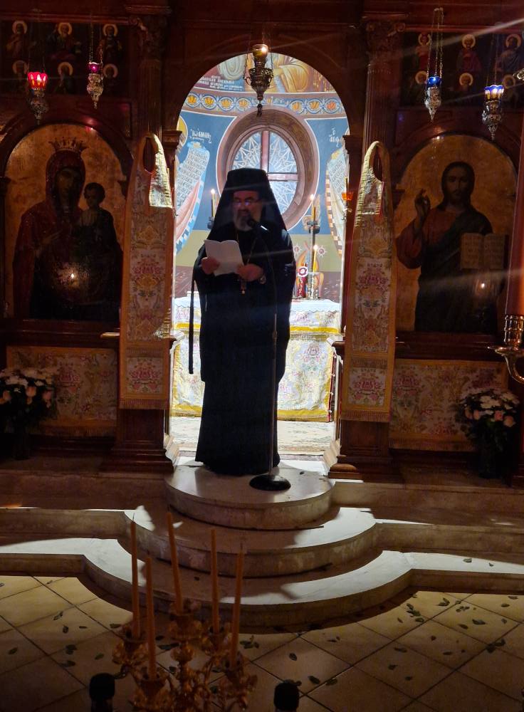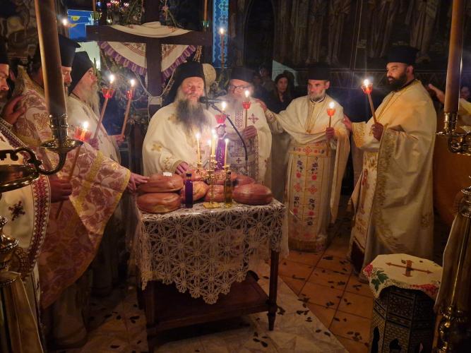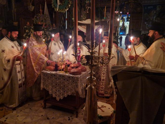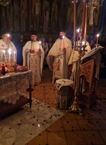 Τον Πανηγυρικό Εσπερινό τέλεσε ο Πρωτοσύγγελος της Ιεράς Μητροπόλεως Ρεθύμνης και Αυλοποτάμου, Αρχιμανδρίτης π. Παρθένιος Καλυβιανάκης ενώ Κήρυγμα έκανε ο Αρχιμανδρίτης π. Άνθιμος Μαντζουράνης. Συμμετείχαν ο Ηγούμενος της Ι.Μ. Αγίας Αναστασίας της Ρωμαίας, Αρχιμανδρίτης π. Βασίλειος Παπαδάκης και κληρικοί της τοπικής εκκλησίας.