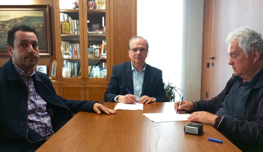Η διαδικασία υπογραφής της σύμβασης με τον ανάδοχο εργολάβο κ. Εμμανουήλ Ξέκαλο, έγινε στο δημαρχείο παρουσία του Αντιδημάρχου Τεχνικών Έργων και Υποδομών κ. Άγγελο Μαλά.