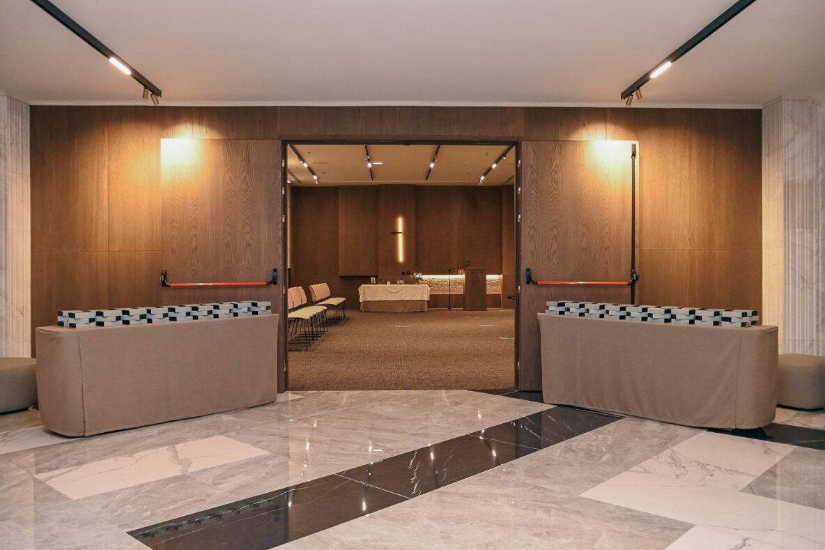 Ο σχεδιασμός και τα υλικά του κελύφους τους έχουν επιλεχθεί όχι μόνο για την αισθητική τους αλλά και για την ηχοαπορρόφηση και ηχομόνωση, σε πλήρη εφαρμογή της ακουστικής μελετης που προηγήθηκε, δημιουργώντας ένα περιβάλλον απόλυτης ηρεμίας για κάθε εκδήλωση.