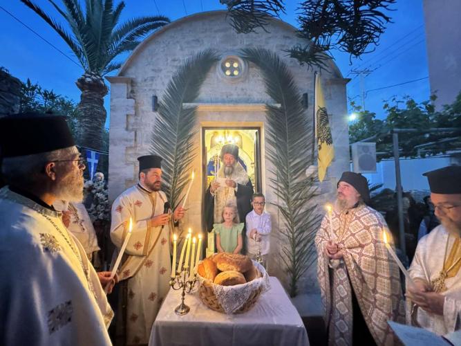 Το απόγευμα της Δευτέρας της Διακαινησίμου, 21ης Απριλίου 2025, ο Σεβασμιώτατος Μητροπολίτης Ρεθύμνης και Αυλοποτάμου κ. Πρόδρομος μετέβη στην οικία Παλαφούτη και χοροστάτησε κατά τον Εσπερινό στο πανηγυρίζον Ιδιωτικό Παρεκκλήσιο των Αγίων Ραφαήλ, Νικολάου και Ειρήνης, με τη συμμετοχή πλήθους κληρικών και πιστών.