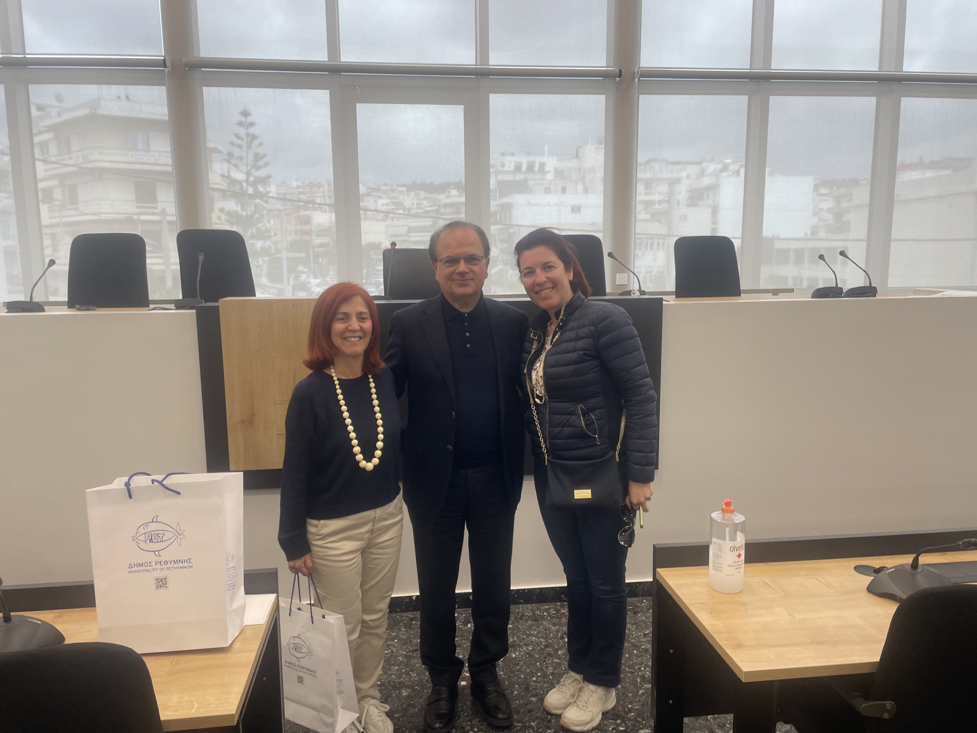 Την επίσκεψη είκοσι μαθητών και μαθητριών που συμμετέχουν στο πρόγραμμα Erasmus με τίτλο «Ευρωπαίοι Πολίτες» δέχθηκε σήμερα στο Δημαρχείο της πόλης ο Δήμαρχος Ρεθύμνης Γιώργης Μαρινάκης.