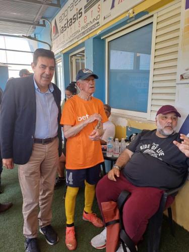 Αντιθέτως ο Πρόεδρος του Δημοτικού Συμβουλίου Νίκος Αγριμάκης,, ο Αντιδήμαρχιος Μάνος Τσάκωνας και οι Δημοτικοί Σύμβουλοι Νίκος Δερεδάκης και Μανώλης Τζαγκαράκης προτίμησαν να καθίσουν στον πάγκο και να ενισχύσουν τους αγωνιζόμενους με τα συνθήματα και τις ιαχές τους.