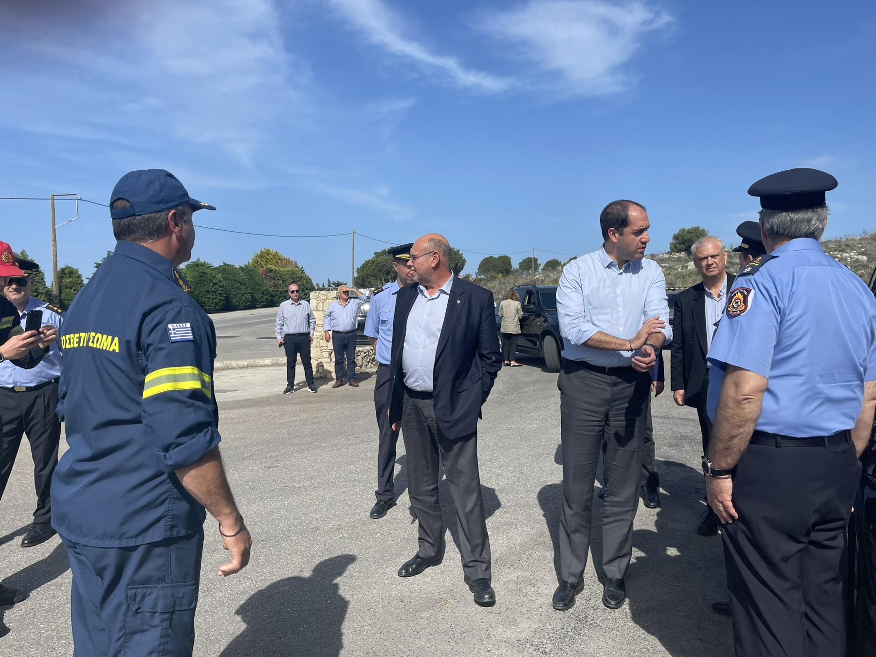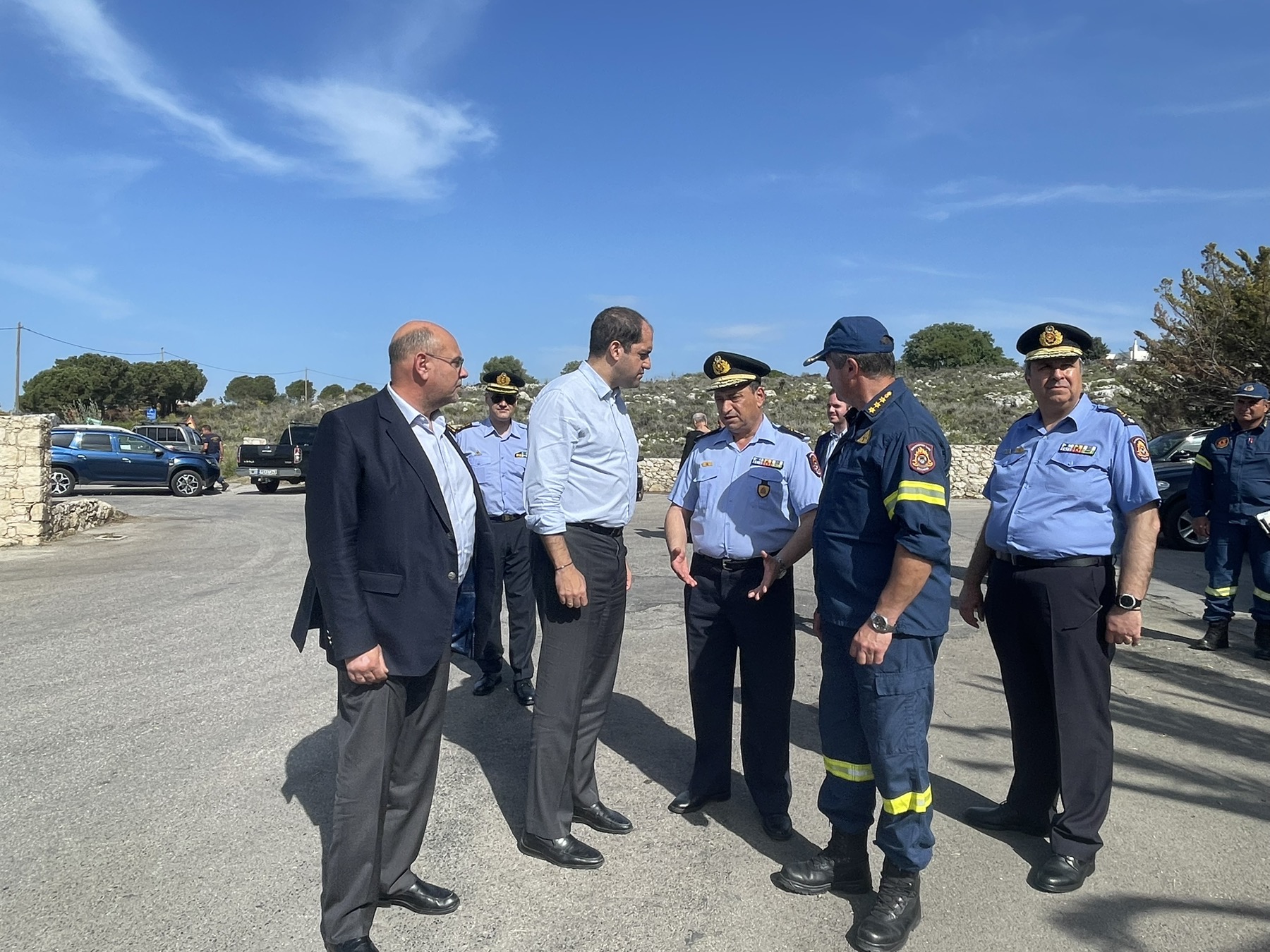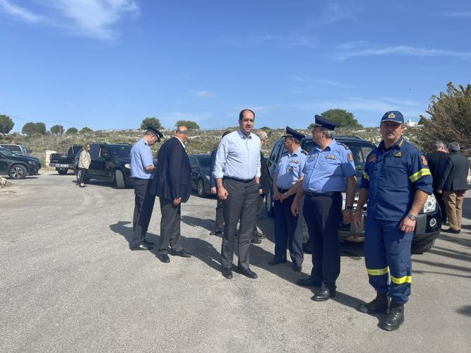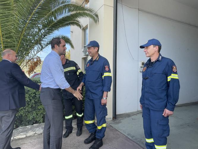 Η επίσκεψη πραγματοποιείται στο πλαίσιο της σειράς συσκέψεων που έχει σήμερα ο Υπουργός στην Κρήτη για τα ζητήματα οργάνωσης και πρόληψης κατά τη διάρκεια της αντιπυρικής περιόδου.