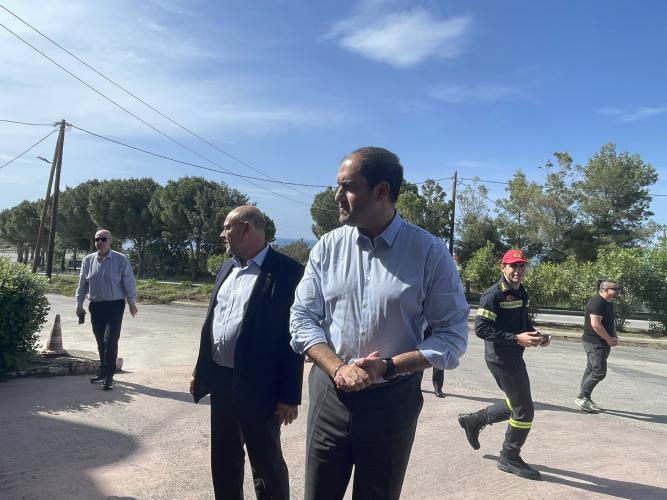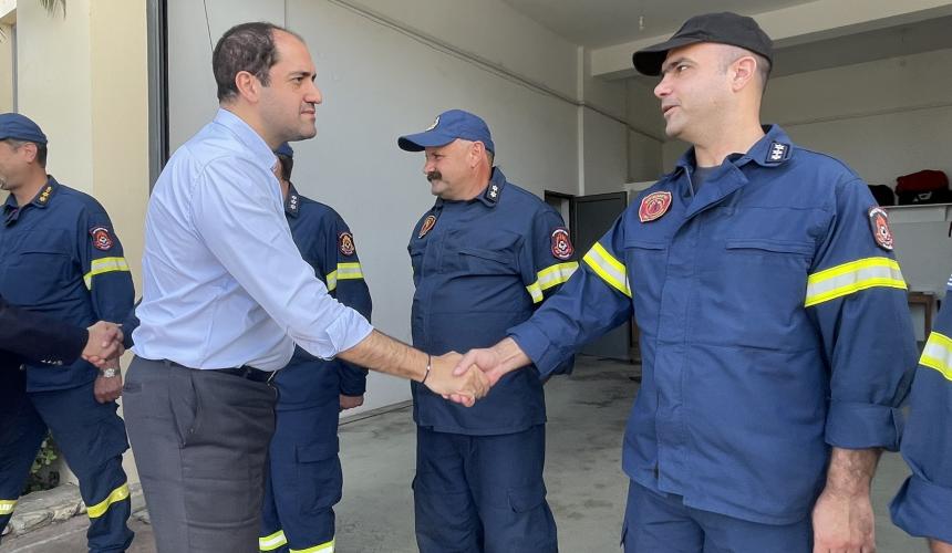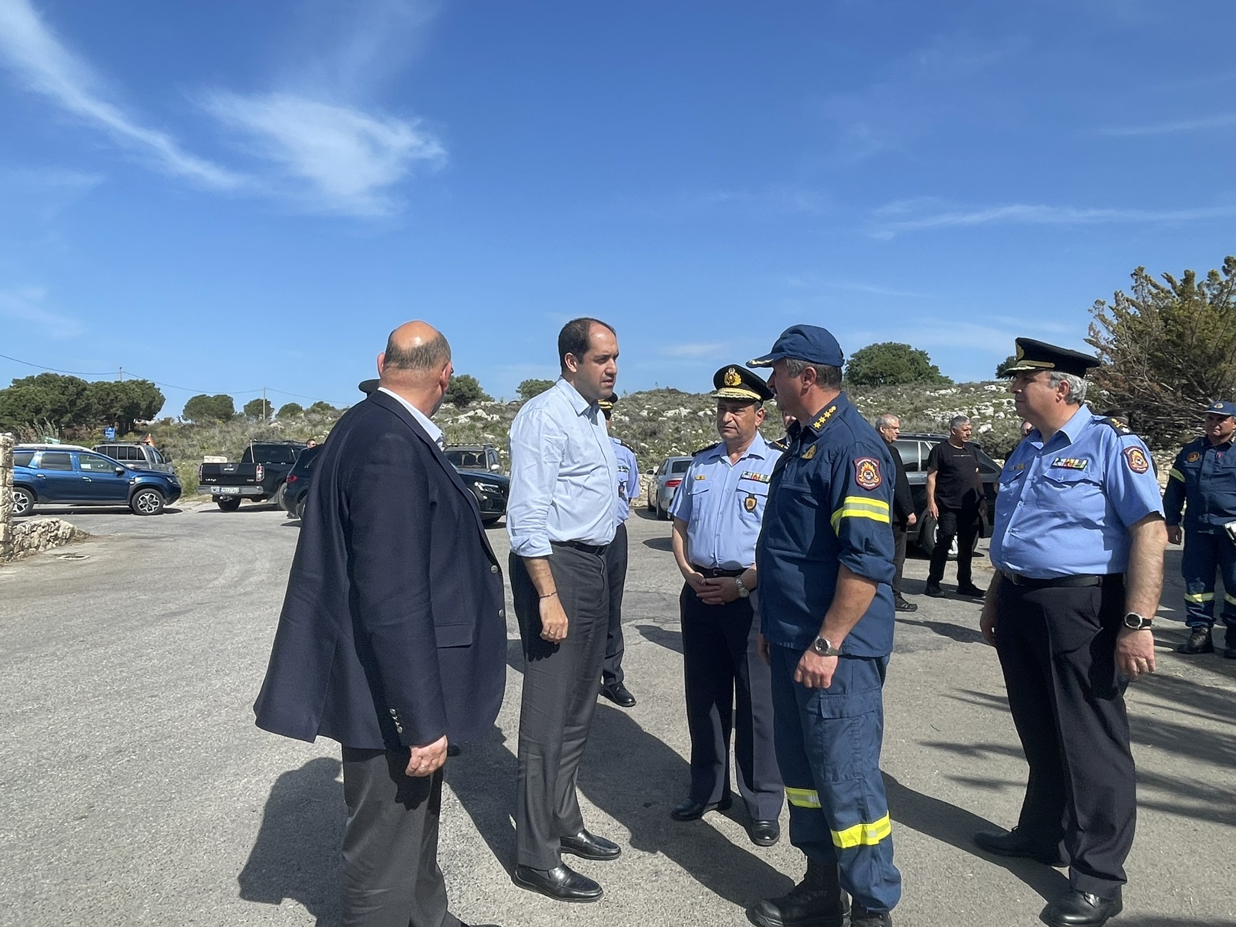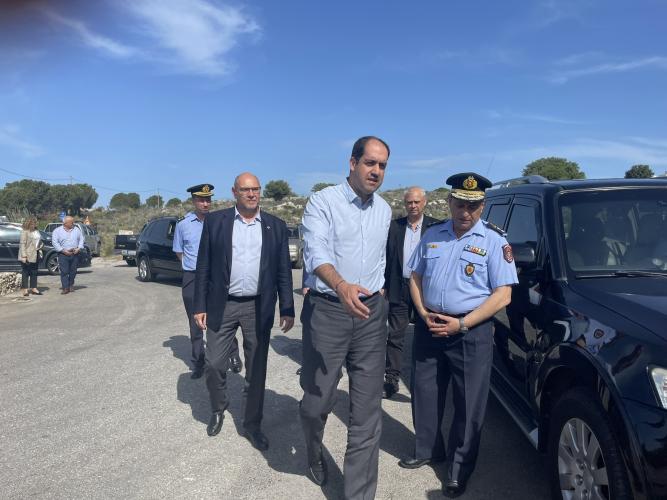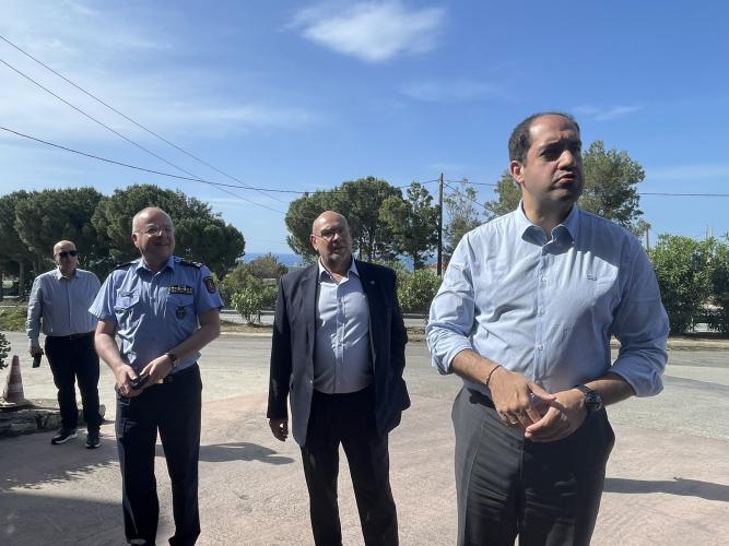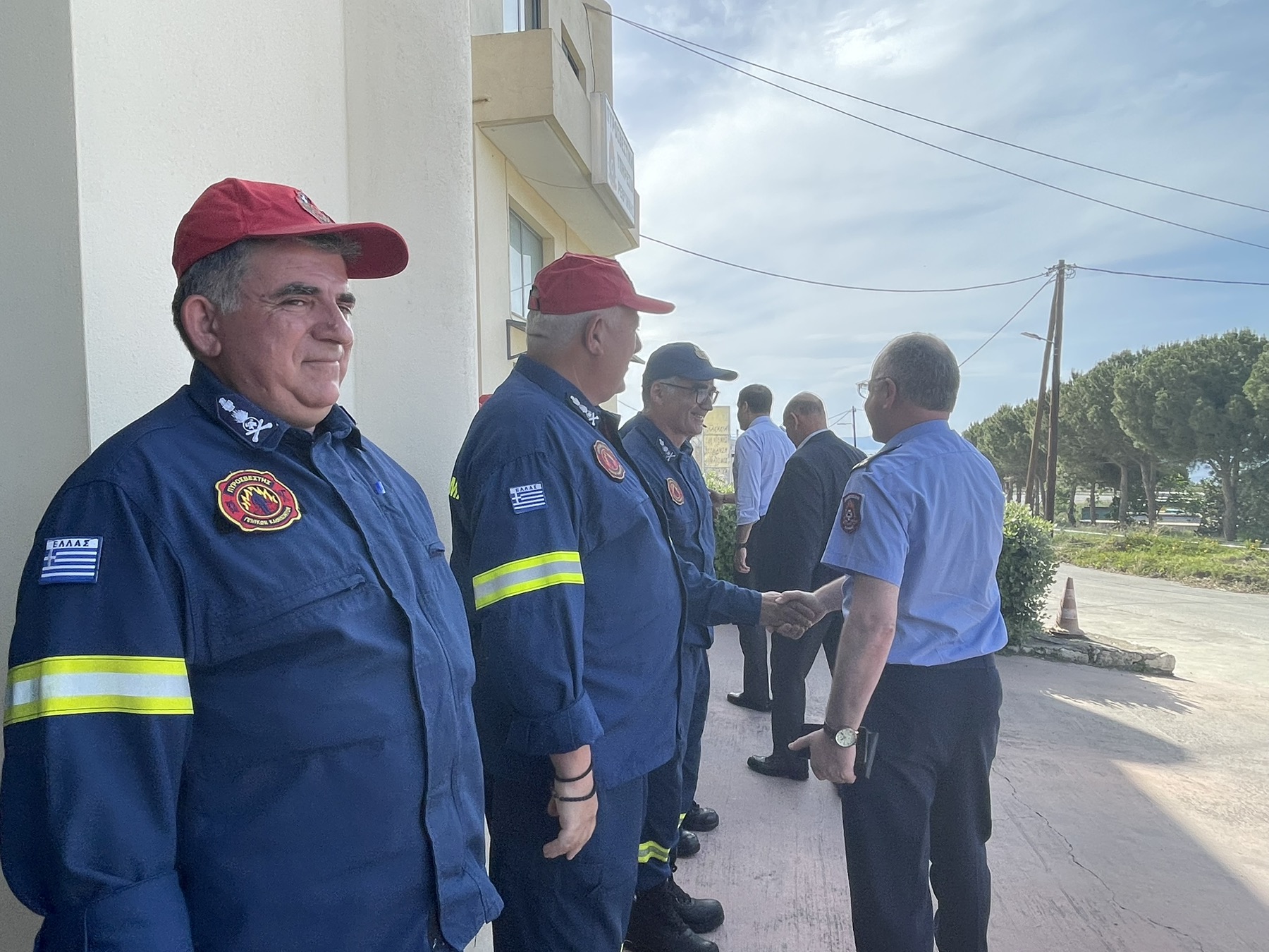 Η επίσκεψη πραγματοποιείται στο πλαίσιο της σειράς συσκέψεων που έχει σήμερα ο Υπουργός στην Κρήτη για τα ζητήματα οργάνωσης και πρόληψης κατά τη διάρκεια της αντιπυρικής περιόδου.