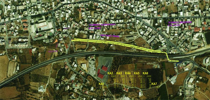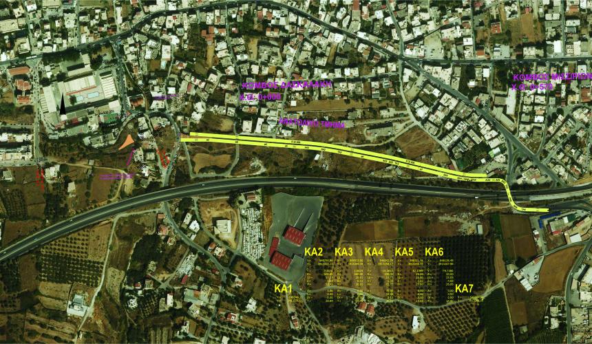Ο χάρτης απεικονίζει τη χάραξη που έχει προταθεί από το μελετητή η οποία συνδέεται μέσω του ανισόπεδου κόμβου που υπάρχει εκεί, και φτάνει μέχρι τον κόμβο Μισιρίων.