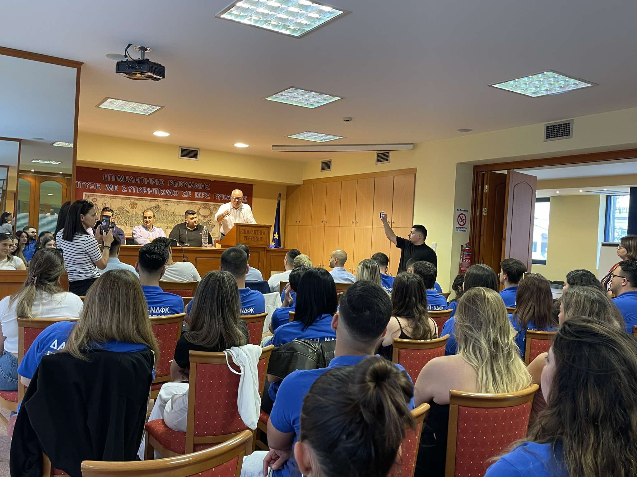 Στην εκδήλωση επίσης συμμετείχαν ο πρόεδρος της ΔΕΕΠ Ρεθύμνου Μανώλης Φουρφουλάκης, ο πρόεδρος της ΟΝΝΕΔ Ρεθύμνου Θάνος Σκαλούμπακας, το μέλος της Κεντρικής Επιτροπής ΟΝΝΕΔ Χρήστος Λαγκαδιανός, το στέλεχος της ΟΝΝΕΔ Νίκος Νεβεσκιώτης και πλήθος φοιτητών της ΔΑΠ ΝΔΦΚ Ρεθύμνου.
