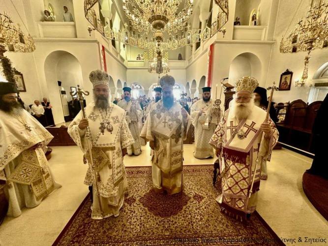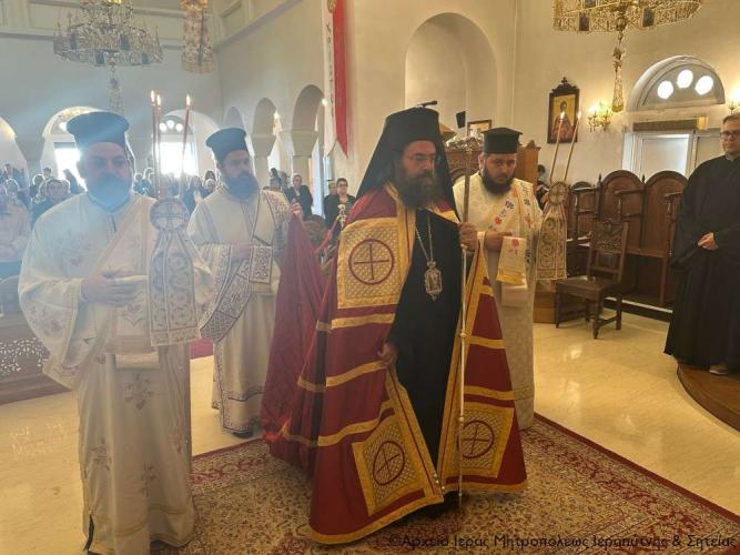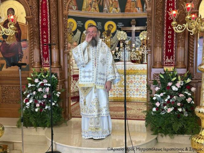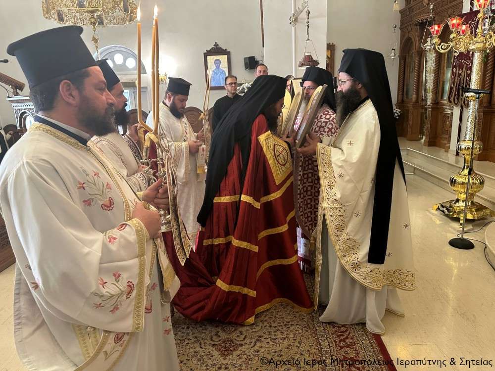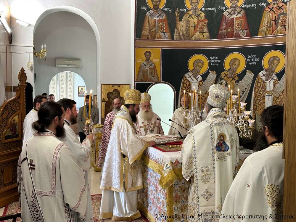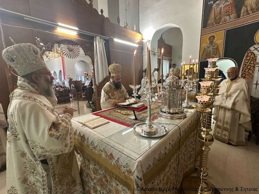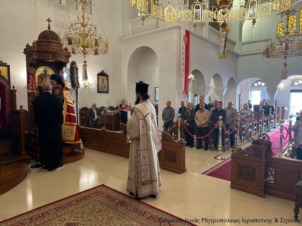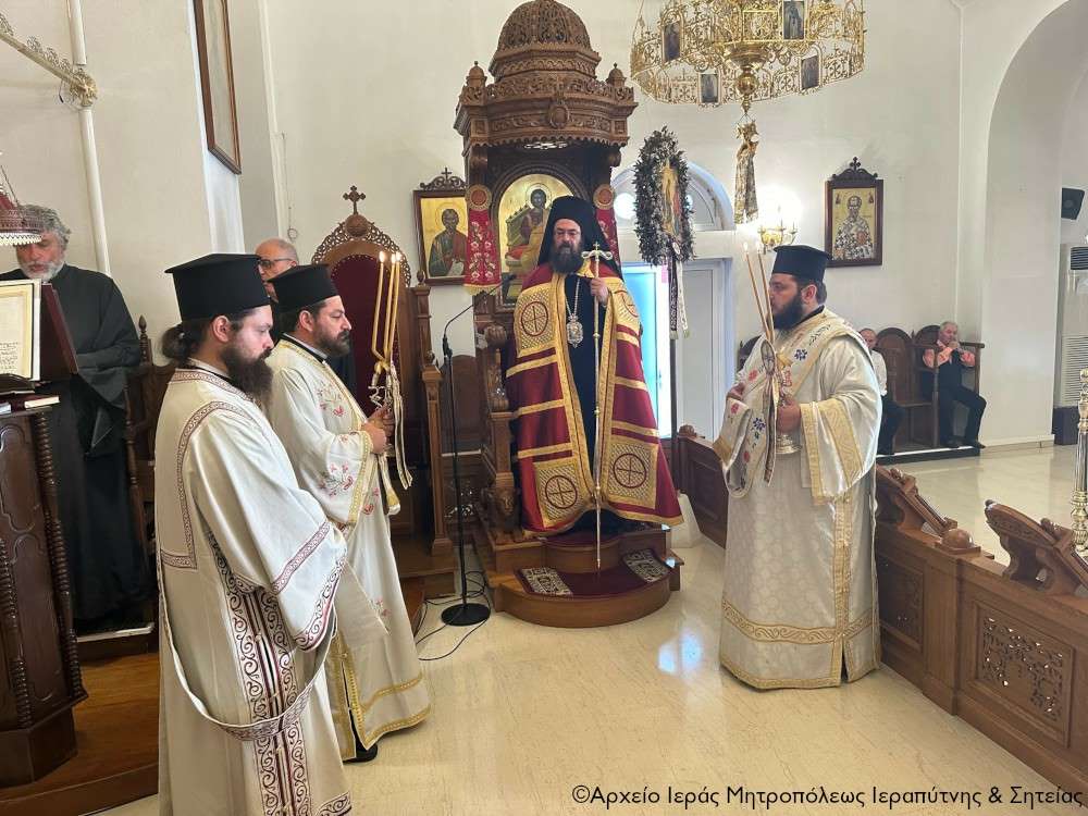 Στην ακολουθία του Όρθρου χοροστάτησε ο Σεβ. Μητροπολίτης Πέτρας και Χερρονήσου κ. Γεράσιμος, ο οποίος και προεξήρχε της τρισαρχιερατικής Θείας Λειτουργίας που ακολούθησε. Συλλειτούργησαν ο Σεβ. Μητροπολίτης Ρεθύμνης και Αυλοποτάμου κ. Πρόδρομος και ο Σεβ. Μητροπολίτης Ιεραπύτνης και Σητείας κ. Κύριλλος, ενώ τον θείο λόγο κήρυξε επίκαιρα ο Σεβ. Μητροπολίτης Πέτρας και Χερρονήσου κ. Γεράσιμος.
