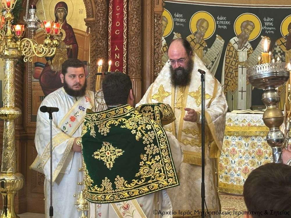 Στην Θεία Λειτουργία έλαβαν μέρος ο Πανοσιολ. Αρχιμ. Αμβρόσιος Σκαρβέλης, Πρωτοσύγκελλος της Ι. Μητροπόλεως, ο Πανοσιολ. Αρχιμ. Πορφύριος Αγγελάκης, Εφημέριος και προϊστάμενος του πανηγυρίζοντος ναού, ο εξ Ιεραπέτρας καταγόμενος Αιδεσιμολ. πρωτ. Ιωάννης Δελημπαλτάς, Εφημέριος της Ι. Μητροπόλεως Κορίνθου, ο συνταξ. Αιδεσιμ. πρωτ. Μιχαήλ Ξυδιανός, ο Αιδεσιμ. Ιερεύς Γεώργιος Λογκάκης και οι Διάκονοι Κωνσταντίνος Ζουμπεράκης, της Ιεράς Μητροπόλεως Ρεθύμνης και Αυλοποτάμου, Γεώργιος Αλέξης, της Ιεράς Μητροπόλεως Πέτρας και Χερρονήσου, και Θεμιστοκλής Μπεϊνας, της Ιεράς Μητροπόλεως Ιεραπύτνης και Σητείας.