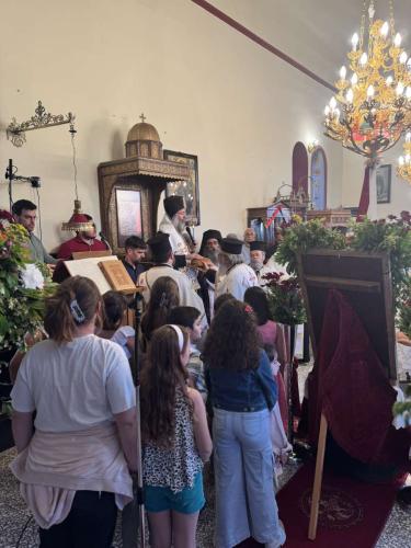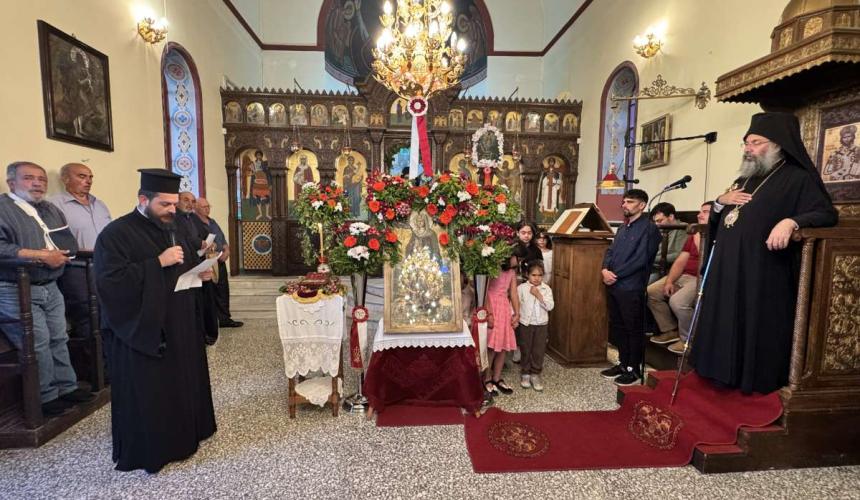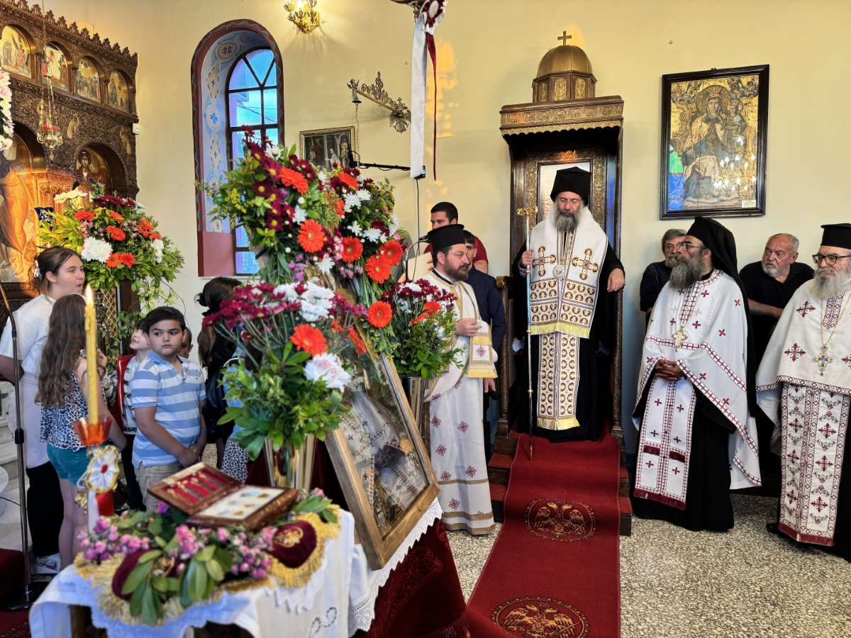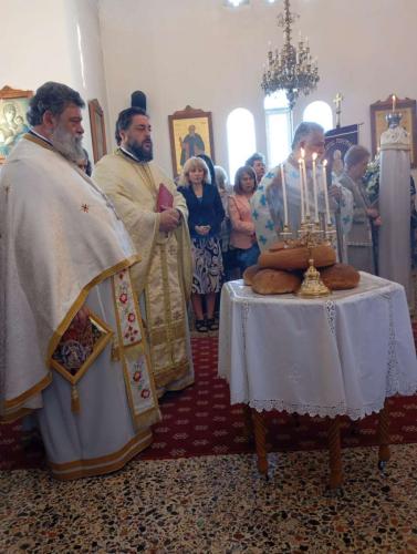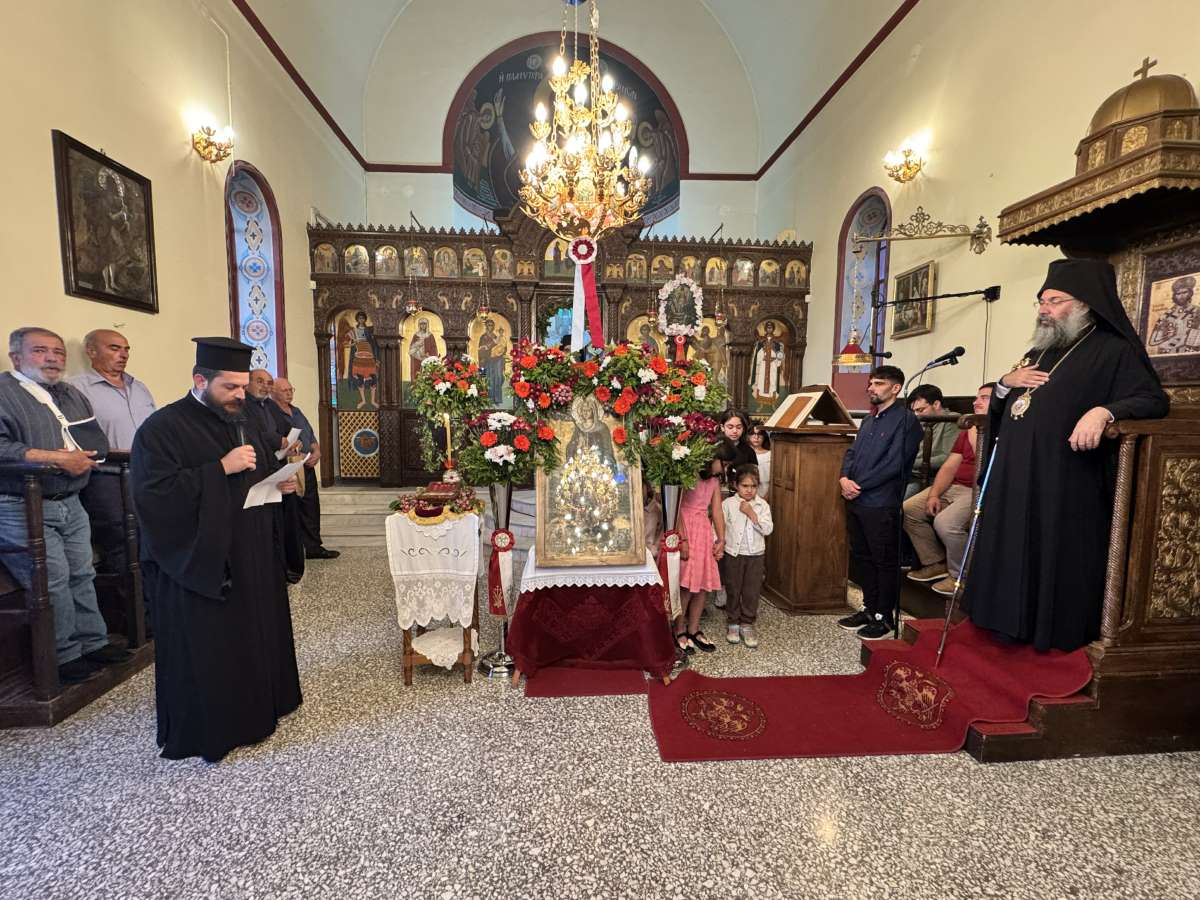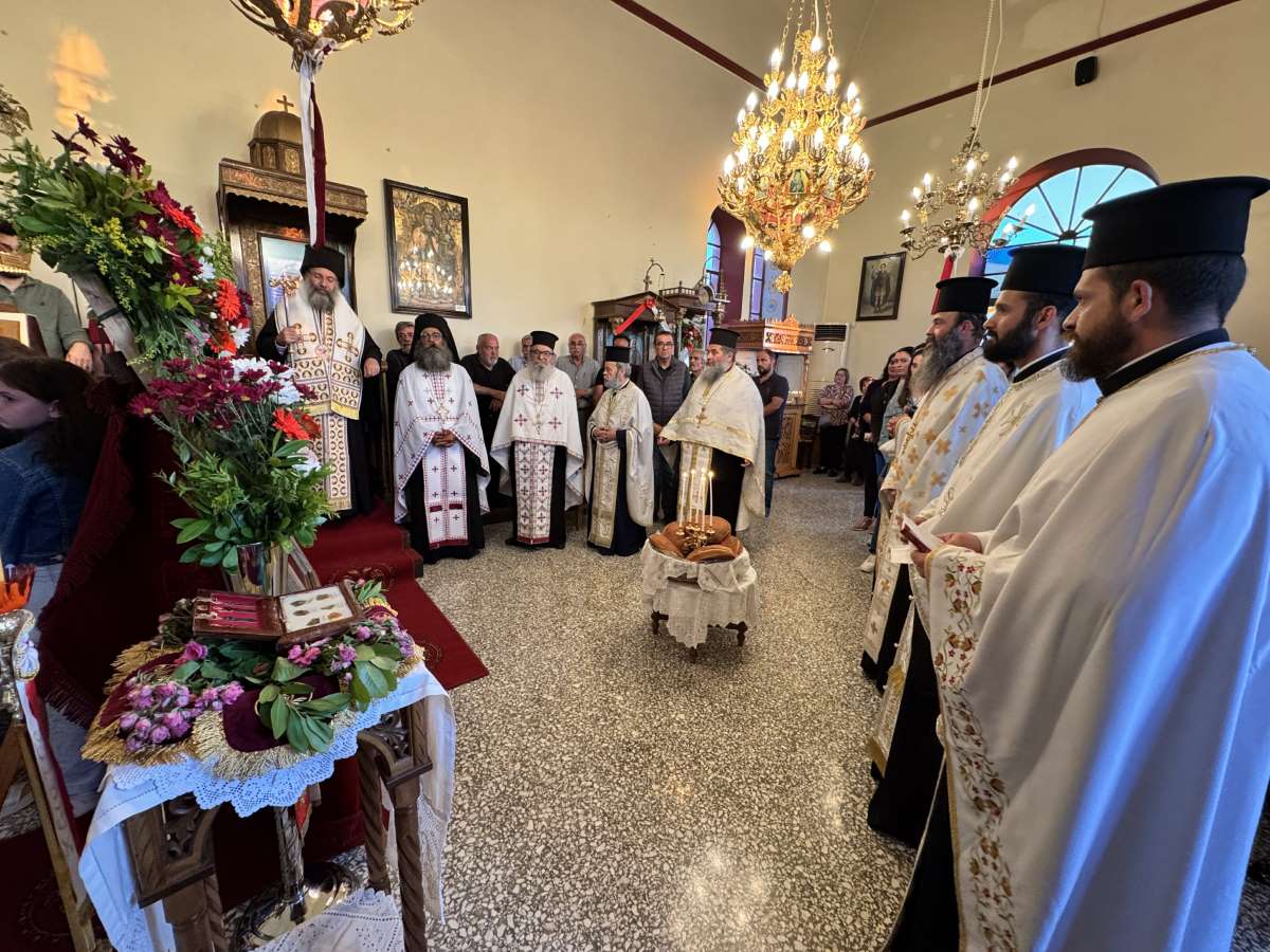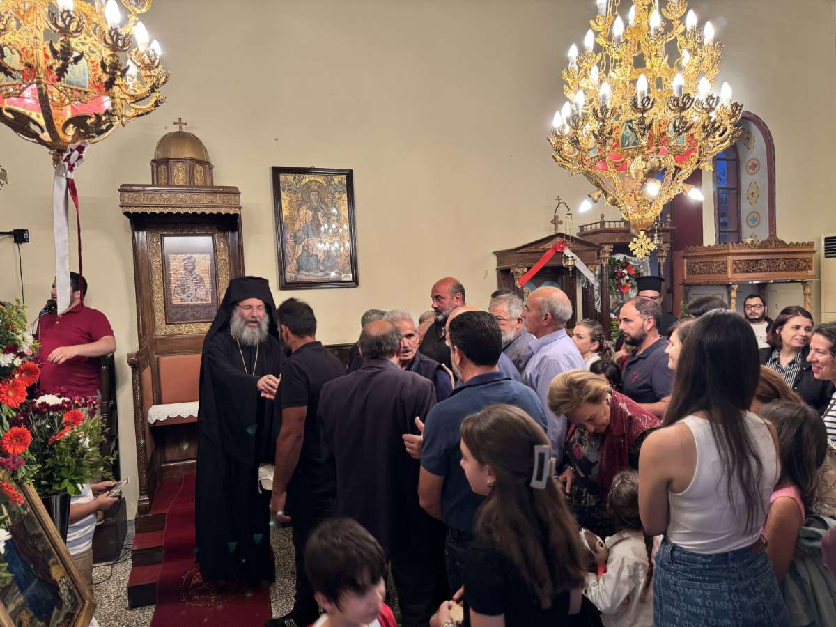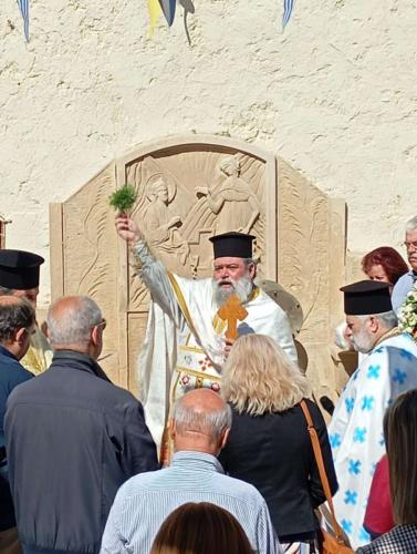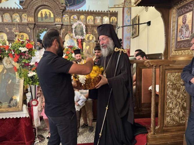 Τον Σεβασμιώτατο προσεφώνησαν με θερμούς λόγους ο Εφημέριος της Ενορίας, Αιδεσ. Πρεσβύτερος Ελευθέριος Στριλιγκάς, καθώς και οι Πρόεδροι της Τοπικής Κοινότητας και του Πολιτιστικού Συλλόγου, προσφέροντας αναμνηστικά δώρα για την πρώτη αυτή συμμετοχή του Σεβασμιωτάτου στην Πανήγυρι της Ενορίας.