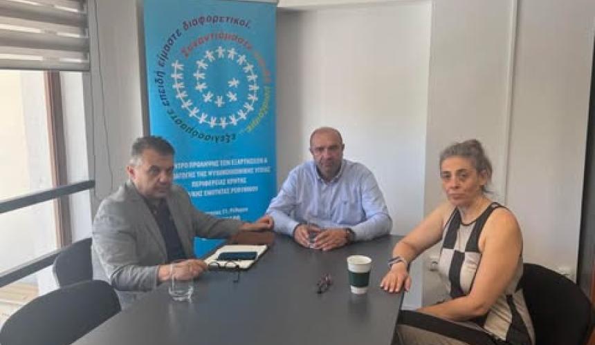 Την Τετάρτη 4 Ιουνίου πραγματοποιήθηκε στο χώρο του Κέντρου Πρόληψης Π.Ε Ρεθύμνου, συνάντηση εργασίας μεταξύ του κ. Σαρρή Μιχάλη, Προέδρου του Κέντρου Πρόληψης και του κ. Παπαδογιάννη Νεκταρίου, Αντιδημάρχου Παιδείας του Δ. Ρεθύμνης. Στη συνάντηση παρευρέθηκε, επίσης, η επιστημονική υπεύθυνη, κα Μπογά Ανδρονίκη.