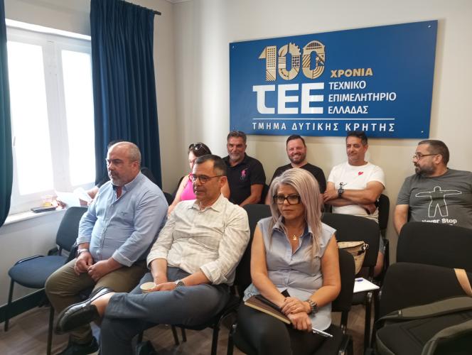 Η σύσκεψη έγινε στα τοπικά γραφεία του Τεχνικού Επιμελητηρίου το μεσημέρι της Τετάρτης και την συζήτηση συντόνισε τη πρόεδρος της Ν.Ε. κ. Γεωργία Μανωλίτση.