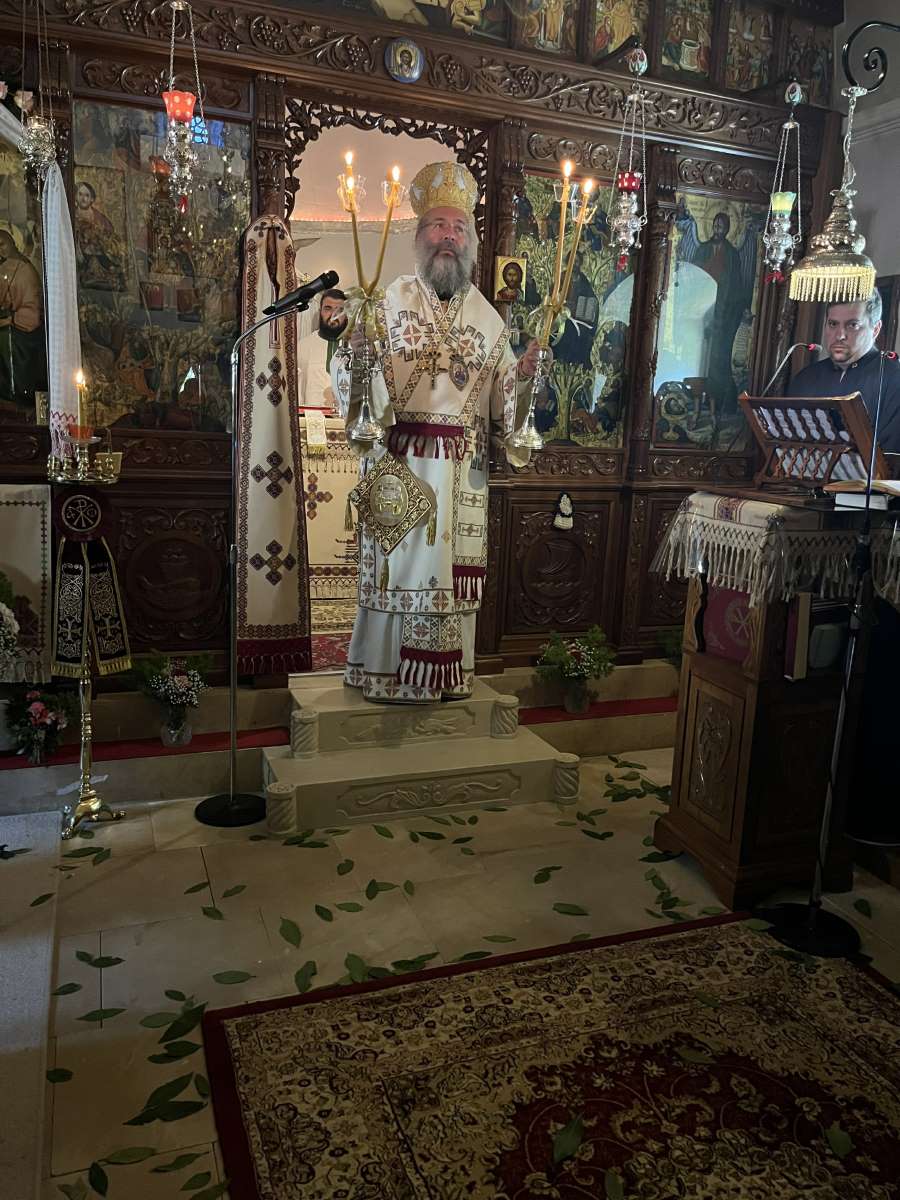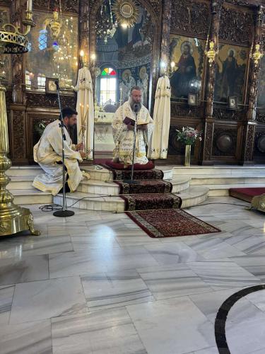 Το πρωί της Κυριακής της Αγίας Πεντηκοστής, 8ης Ιουνίου 2025, ο Σεβασμιώτατος Μητροπολίτης Ρεθύμνης και Αυλοποτάμου κ. Πρόδρομος χοροστάτησε κατά τον Όρθρο και τέλεσε την Αρχιερατική Θεία Λειτουργία, καθώς και το Μέγα Εσπερινό της Γονυκλισίας, στον Ιερό Μητροπολιτικό Ναό Εισοδίων της Θεοτόκου πόλεως Ρεθύμνης, ευχόμενος προς τους παρόντες κ. Γεώργιο Μαρινάκη, Δήμαρχο Ρεθύμνης, κ. Ρένα Κουτσαλεδάκη, Επικεφαλής της Μείζονος Αντιπολιτεύσεως του Δήμου Ρεθύμνης, και προς σύνολο το εκκλησίασμα, πλούσιο το φωτισμό και τη χάρη του Παναγίου Πνεύματος.