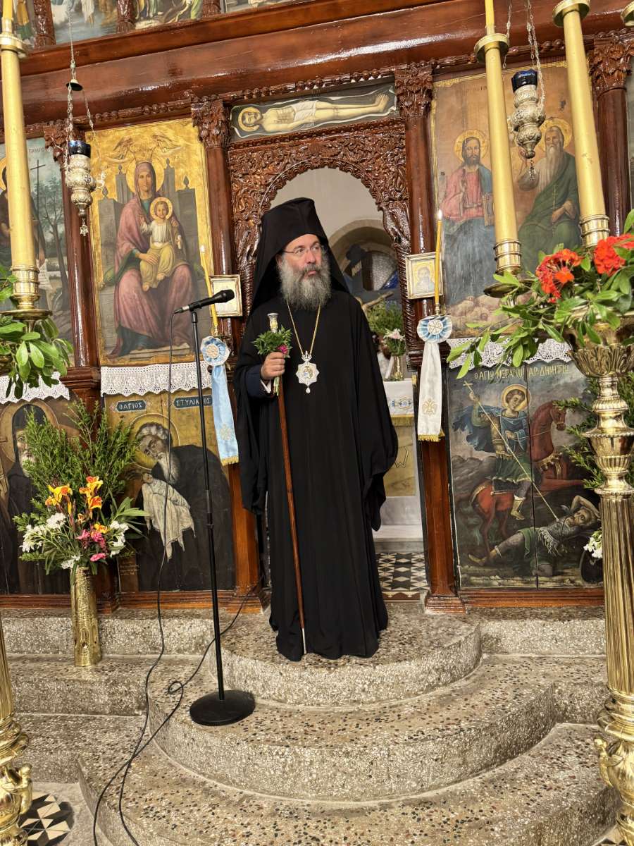Ο Σεβασμιώτατος, στην προσλαλιά του, εξέφρασε θερμές ευχαριστίες και την ευγνωμοσύνη του προς τον πολυσέβαστο Γέροντα, Σεβασμιώτατο άγιο Λάμπης κ. Ειρηναίο, για το παράδειγμα, την πατρική στοργή και την ολοτελή προσευχητική αναφορά του στο Θεό, που γίνονται υπόδειγμα προς όλους, συνεχάρη δε τον άγιο Καθηγούμενο, Πανοσιολ. Αρχιμανδρίτη Βαρθολομαίο Ξερουδάκη, για την επί 15ετία και πλέον πολύτιμη ανακαινιστική του εργασία στην Ιερά Μονή Αγίου Πνεύματος Κισσού και εξέφρασε εγκάρδιες ευχαριστίες προς όλους τους παρόντες κληρικούς και λαϊκούς, τον Δήμαρχο Αγίου Βασιλείου κ. Ιωάννη Ταταράκη, τον Υποδιοικητή της «V Μεραρχίας Κρητών» και τον Διοικητή της Πυροσβεστικής Υπηρεσίας Νομού Ρεθύμνης, οι οποίοι παρέστησαν μαζί με εκατοντάδες προσκυνητές από ολόκληρη τη Μεγαλόνησο Κρήτη.