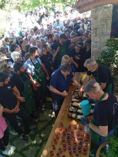 Παράλληλα όμως οφείλουμε πολλές και θερμές ευχαριστίες και συγχαρητήρια για ακόμη μια φορά προς τους δεκάδες εθελοντές, γυναίκες και άνδρες, τα μικρά παιδιά ως και τους μεγαλύτερους που με την φιλοτιμία τους, «όλη ψυχή και διανοία» επί τριημέρου, κινούμενοι «αγαλλομένω ποδί» φρόντισαν με συνέπεια, μερίμνησαν, προετοίμασαν, διακόνησαν κι εξυπηρέτησαν τις μεγάλες ανάγκες που απαιτεί η εορτή.