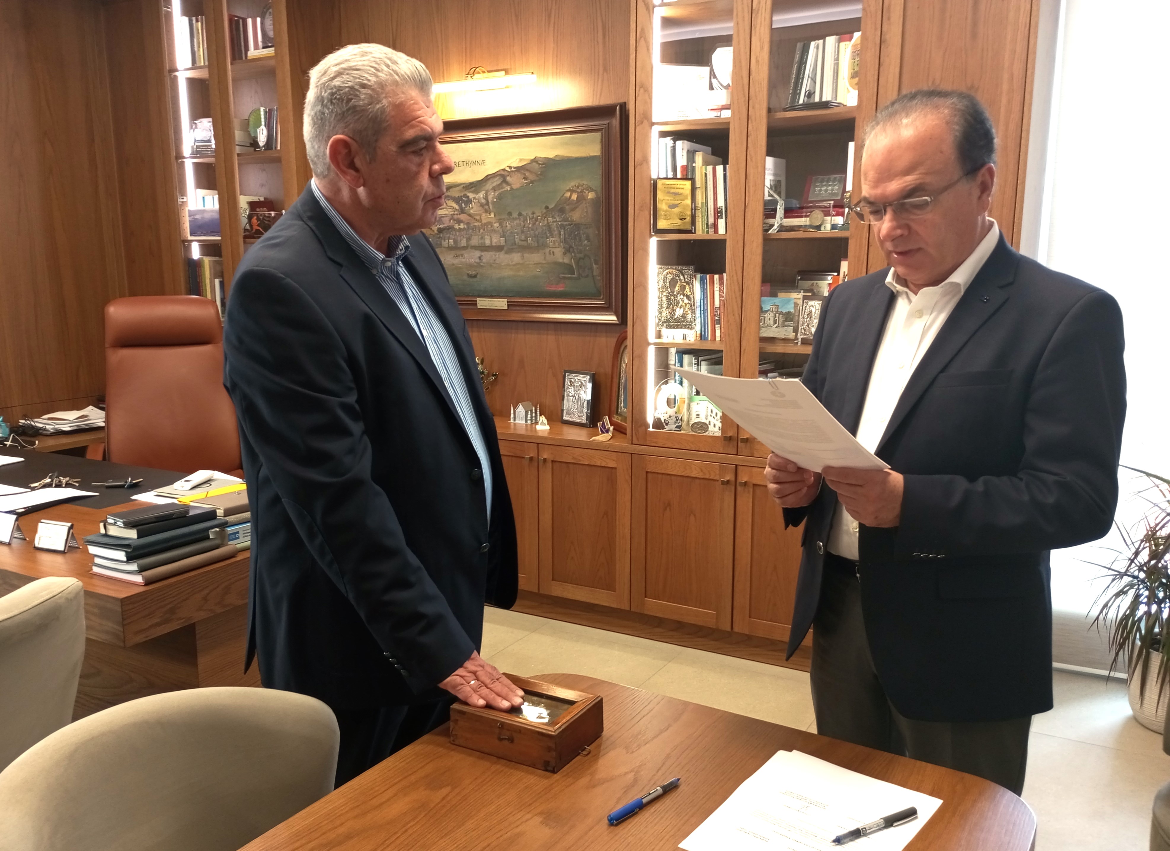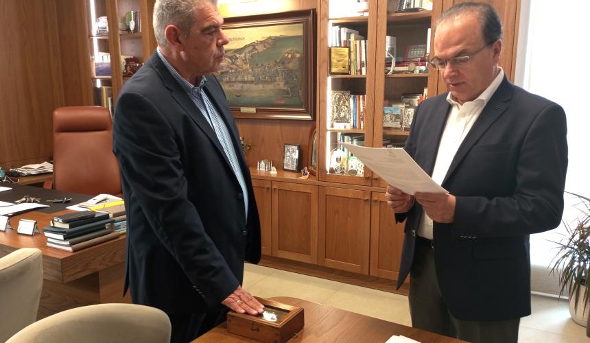 Η ορκωμοσία τους πραγματοποιήθηκε το πρωί στο Δημαρχείο ενώπιον του Δημάρχου, ο οποίος αφού τον ευχαρίστησε θερμά για τις μέχρι σήμερα υπηρεσίες του από την θέση του Ειδικού Συνεργάτη, τον κάλεσε να συνεχίσει την συνεισφορά του μέσα από την επιστημονική του επάρκεια, τις δεξιότητες και τις ικανότητες του, συμβάλλοντας στην καλύτερη δυνατή λειτουργία της υπηρεσίας, στην οποία τοποθετείται, για την υλοποίηση του δημοτικού έργου προς όφελος της τοπικής κοινωνίας.