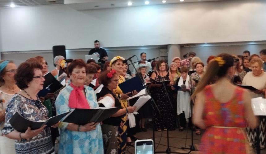 Οι Ομάδες Τραγουδιού των Κ.Α.Π.Η. του Δήμου Ρεθύμνης έδωσαν τον καλύτερο εαυτό τους, γεμίζοντας τη σκηνή με φωνές, ρυθμό και πάθος, σε μια μουσική διαδρομή με τραγούδια της δεκαετίας του ’60. Από το πρώτο τραγούδι μέχρι το τελευταίο, το Ά-Ά γέμισε χορευτικά, ρετρό ατμόσφαιρα και χαρούμενες φωνές.