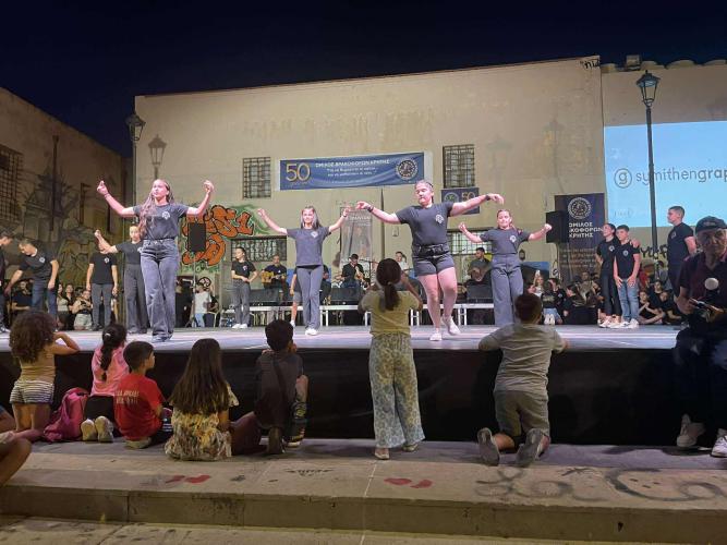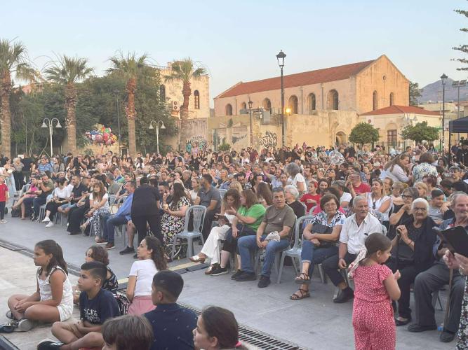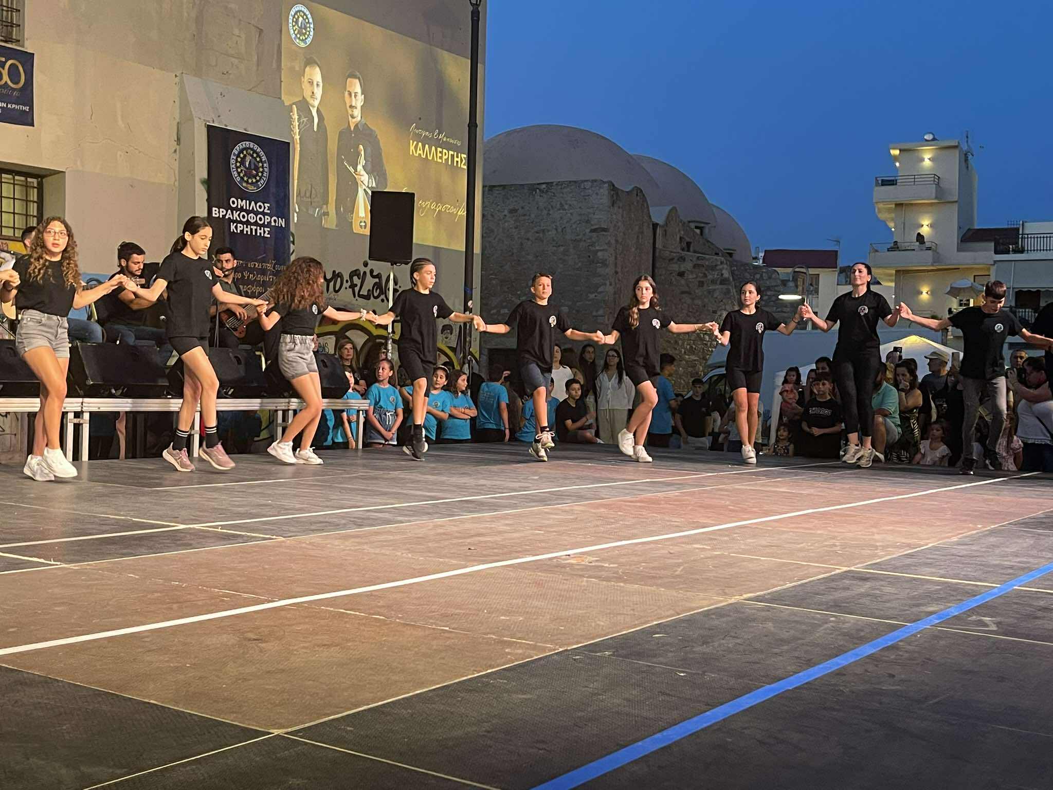 Η πλατεία πλημμύρισε από κόσμο κάθε ηλικίας, φίλους της παράδοσης και της κρητικής μουσικής, που έσπευσαν να απολαύσουν τις εντυπωσιακές εμφανίσεις των μικρών και μεγάλων χορευτών του Ομίλου. Η βραδιά κύλησε με αυθεντικούς κρητικούς σκοπούς, τους οποίους έντυσε μουσικά το συγκρότημα των Λευτέρη και Μανούσου Καλλέργη, προσφέροντας στο κοινό ένα γνήσιο ταξίδι στον ήχο και το ρυθμό του νησιού.