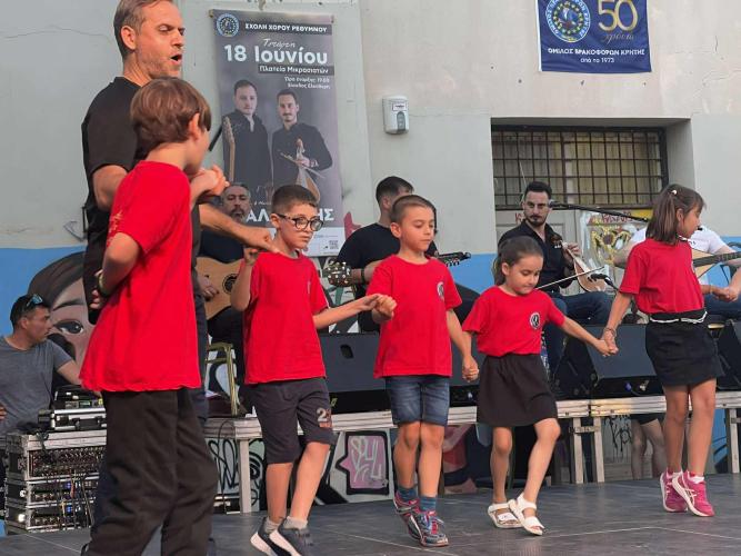 Μια μοναδική βραδιά γεμάτη χορό, μουσική και συγκίνηση χάρισε την Τετάρτη 18 Ιουνίου ο Όμιλος Βρακοφόρων Κρήτης στην πλατεία Μικρασιατών, στο ιστορικό κέντρο του Ρεθύμνου, με αφορμή την ολοκλήρωση της φετινής χρονιάς των χορευτικών του τμημάτων.