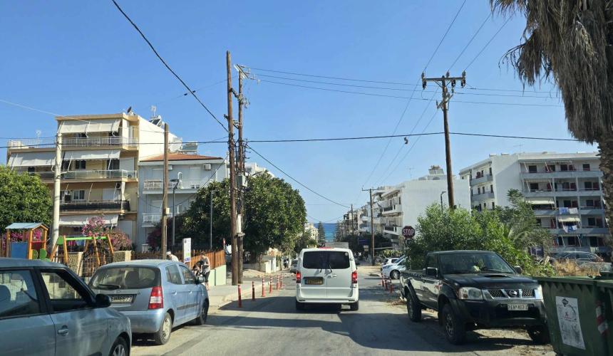 Στη φωτογραφία απεικονίζεται η οδός Κωνσταντινουπόλεως στην περιοχή της Καλλιθέας στο Ρέθυμνο. Τα κολωνάκια που φαίνονται τα οποία τοποθετήθηκαν για να αποτρέπουν τους οδηγούς να παρκάρουν, ώστε τα οχήματα που βρίσκονται στην οδό Κολοκοτρώνη να μπορούν να στρίβουν με ευκολία δεν βοηθούν, καθώς μετά την ανάπλαση ο δρόμος από στενός κατέληξε στενότερος.