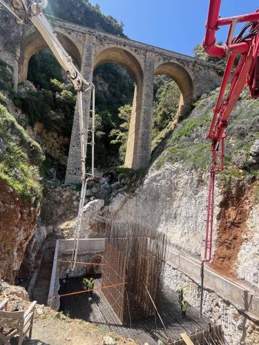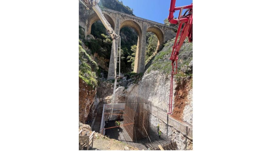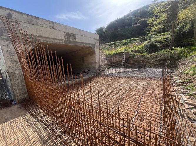εργασίες εκσκαφών, κατασκευής πασσαλότοιχων, τοίχων αντιστήριξης και αντιστήριξης πρανών στο τμήμα Α, καθώς και εκσκαφών, κατασκευής τεχνικών, κατασκευής μεσόβαθρου, ακρόβαθρου και τοίχων αντιστήριξης της νέας γέφυρας Σίμα στο τμήμα Γ.