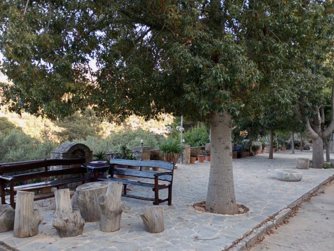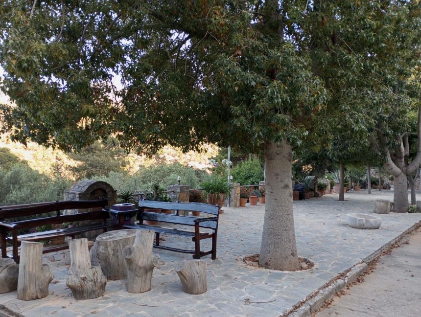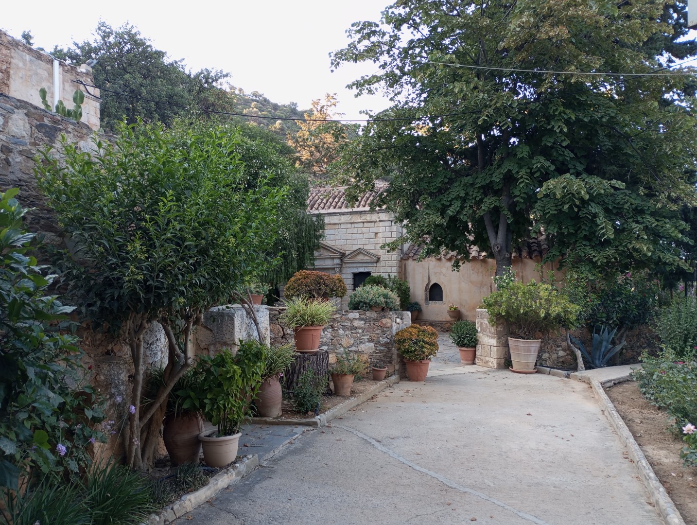 Εκείνο, ωστόσο, που πραγματικά δημιουργεί μοναδική αγαλλίαση στον επισκέπτη, είναι ο περιβάλλοντας χώρος. Πλακοστρωτα, κήποι, δέντρα, λουλούδια, μια όαση πρασίνου, άρτια συνδεδεμένη με το ευρύτερο περιβάλλον των Ταλέων Ορέων και το κτιριακό συγκρότημα, δίνουν την αίσθηση ενός επίγειου παραδείσου…