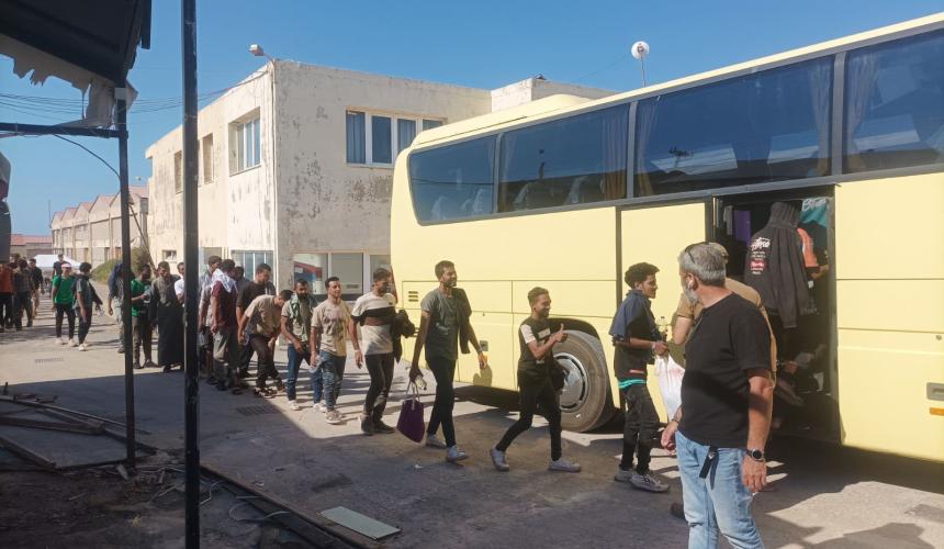 Με λεωφορεία μεταφέρθηκαν στο Ηράκλειο και από εκεί με πλοίο θα οδηγηθούν στα Κέντρα Φιλοξενείας της ηπειρωτικής Ελλάδας.